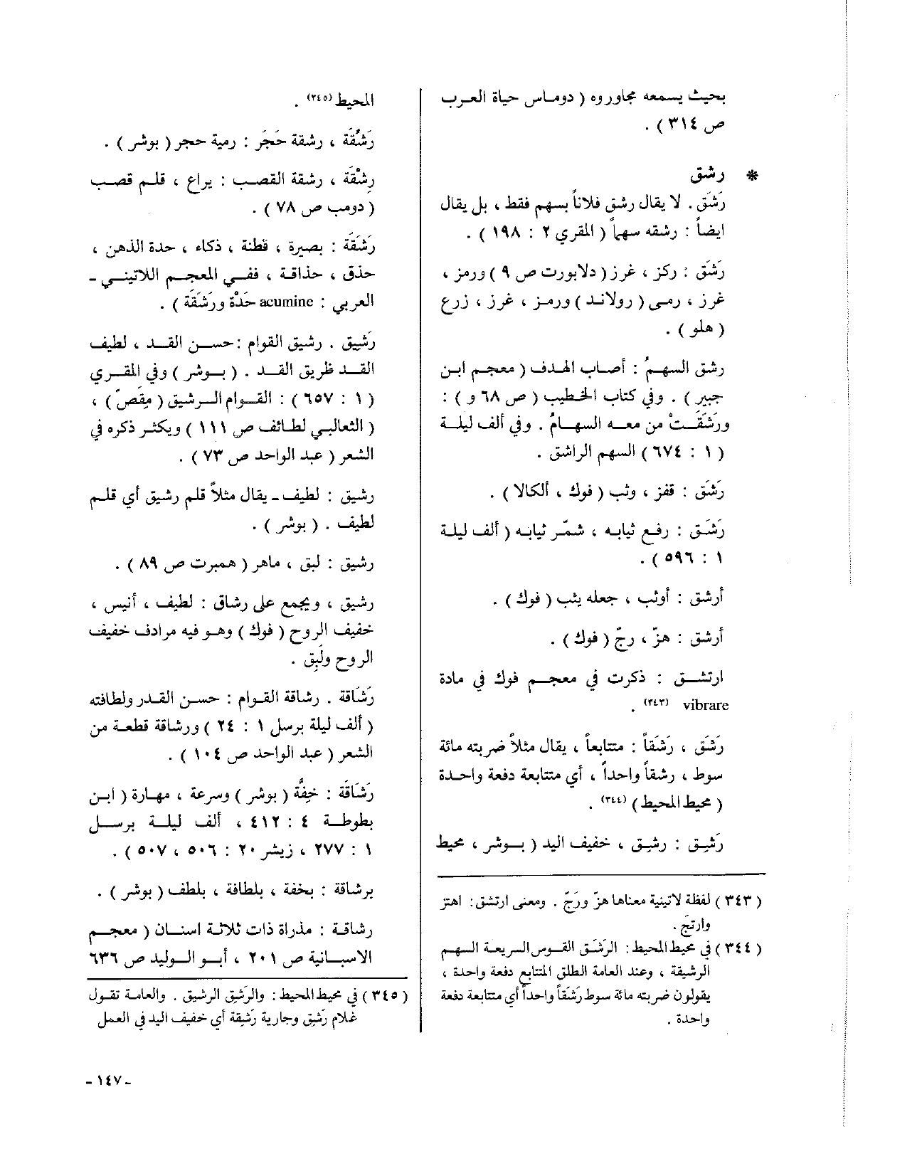 • رَشَق: ركز، غرز (دلابورت ص9)، ورمز، غرز، رمى (رولاند)، ورمز، غرز، زرع (هلو).