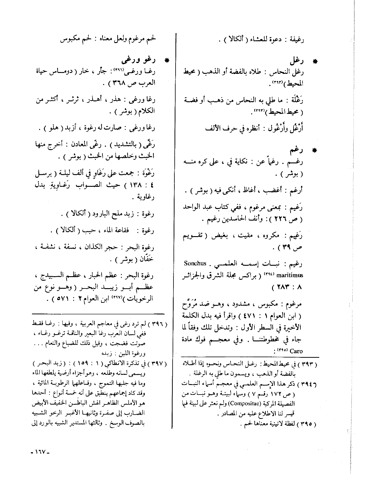 • رغو ورغى: رغا ورغى: جأر، خار (دوماس حياة العرب ص368).
