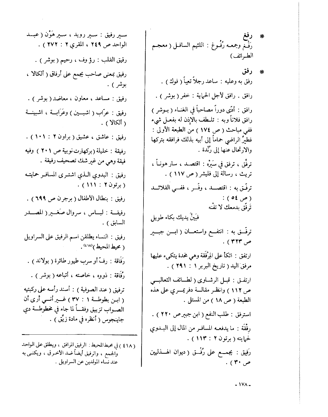 ترفَّق، ترفق في سَيرْه: اقتصد، سار هوناً، تريث، رسالة إلى فليشر (ص117).