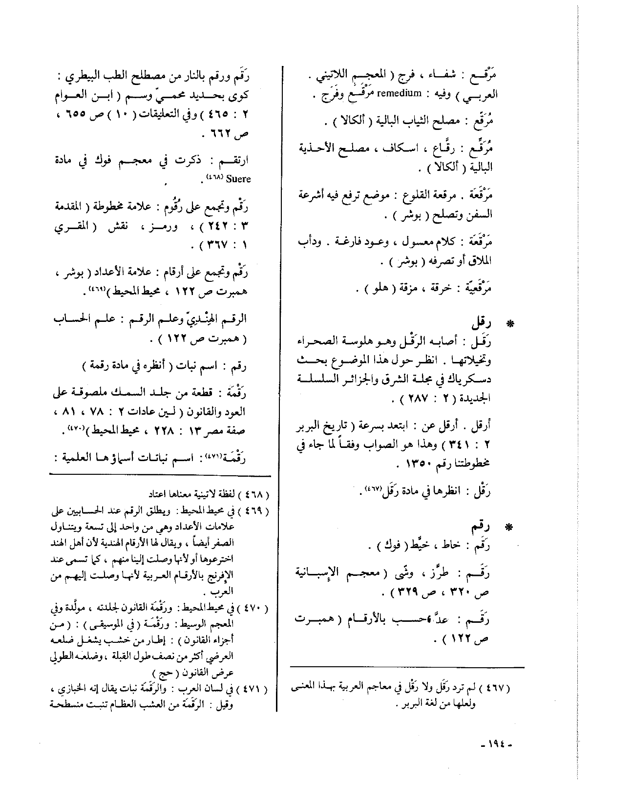 • رقل: رَقَل: أصابه الرَقْل وهو هلوسة الصحراء وتخيلاتها، انظر حول هذا الموضوع بحث دسكرياك في مجلة الشرق والجزائر السلسلة الجديدة (2: 287).