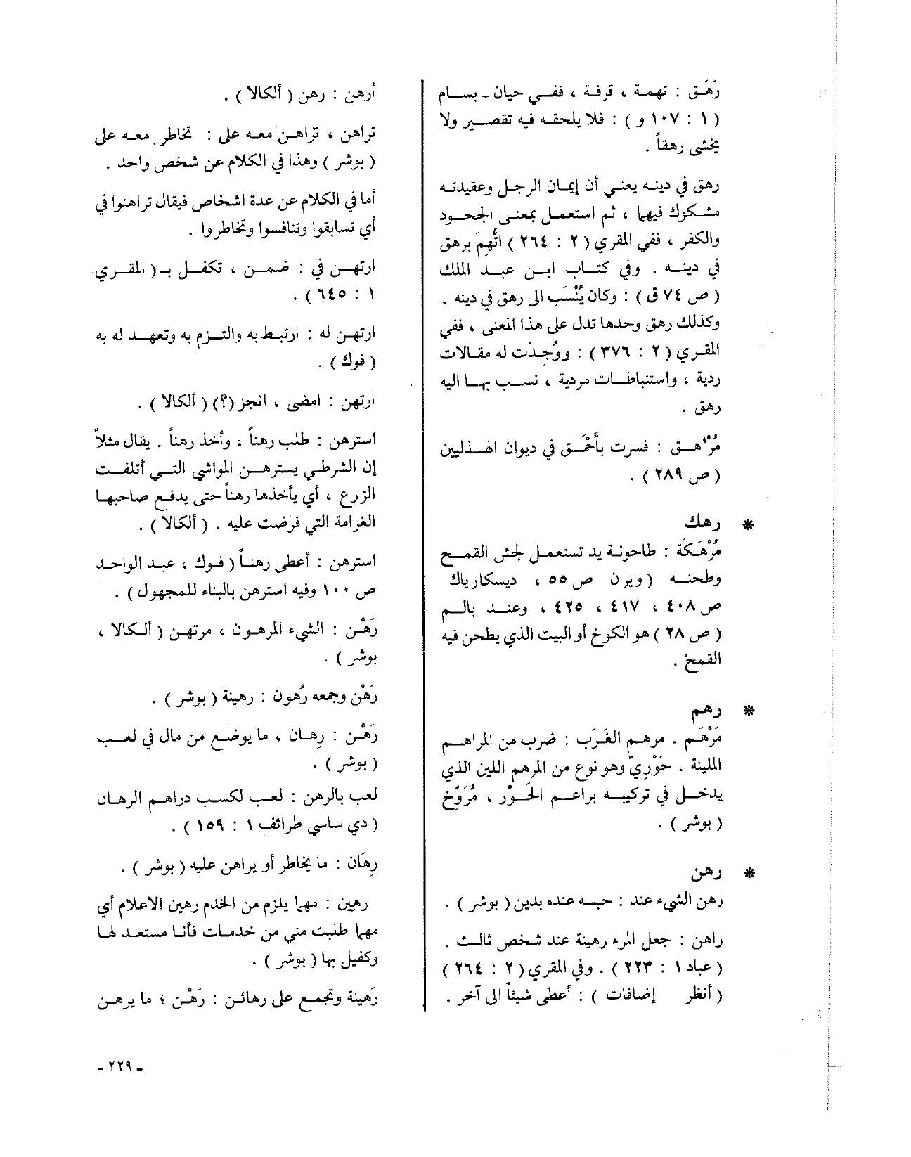 وكذلك رهق وحدها تدل على هذا المعنى، ففي المقري (2: 376): ووُجِدَت له مقالات ردية، واستنباطات مردية، نسب بها إليه رهق.