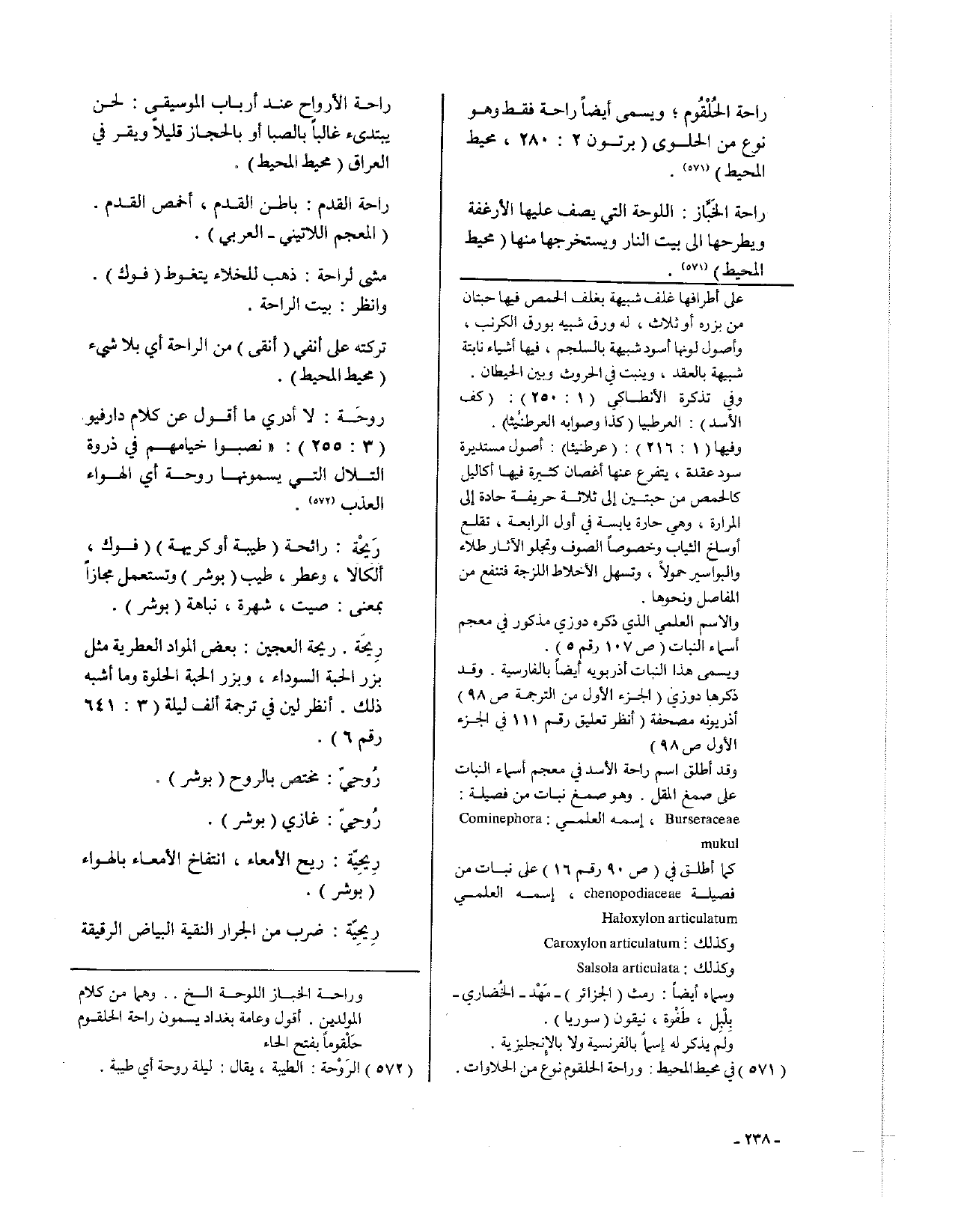روحَة: لا أدري ما أقول عن كلام دارفيو (3: 255): ((نصبوا خيامهم في ذروة التلال التي يسمونها روحة أي الهواء العذب)).