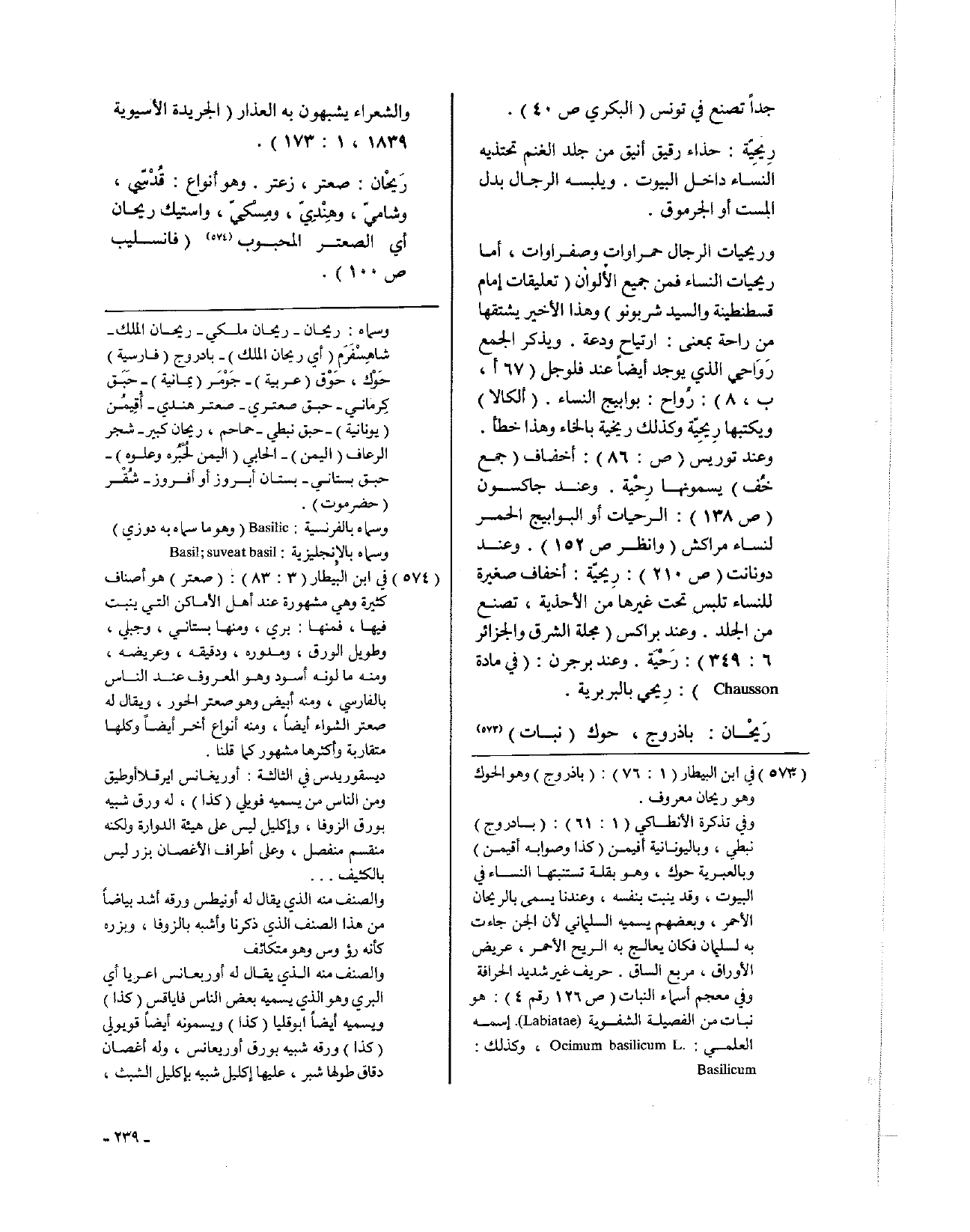 رَيحْان: باذروج، حوك (نبات) والشعراء يشبهون به العذار (الجريدة الآسيوية 1839، 1: 173).