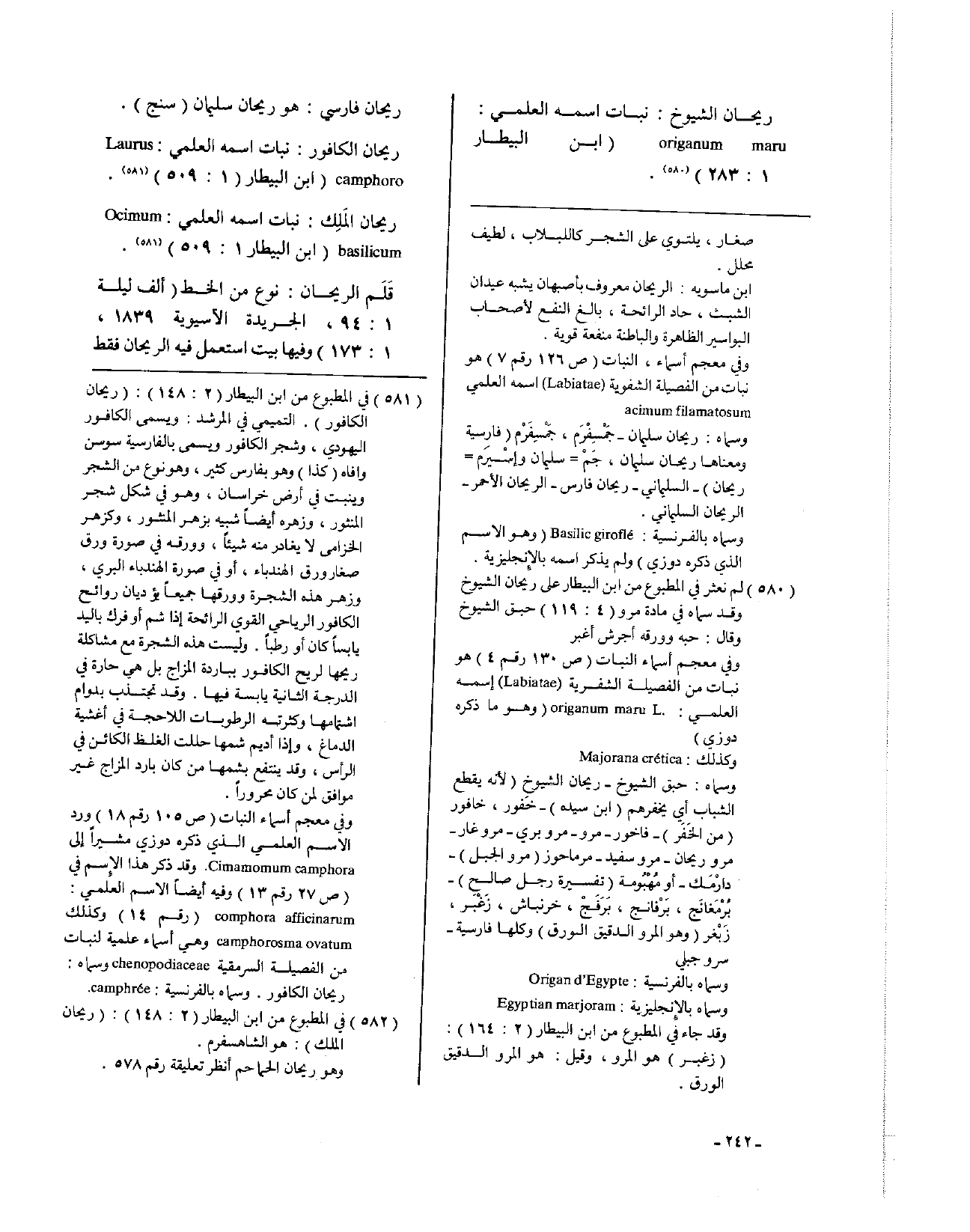 ريحان الكافور: نبات اسمه العلمي Laurus camphoro ( ابن البيطار 1: 509).