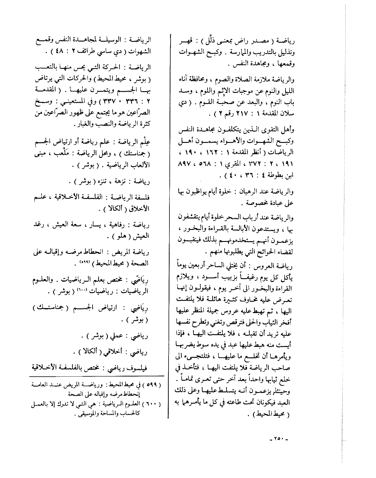 والرياضة: ملازمة الصلاة والصوم، ومحافظة آناء الليل والنوم عن موجبات الإثم واللوم، وسد باب النوم، والبعد عن صحبة القوم (دي سلان المقدمة 1: 217 رقم 2).