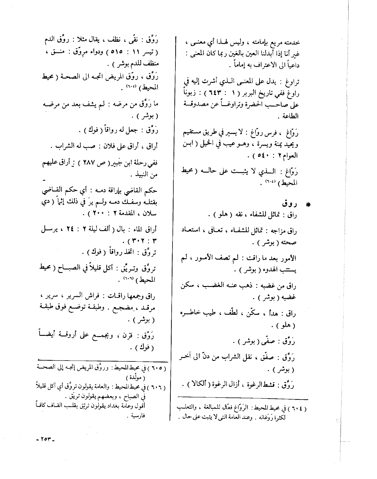 رَوَّق، روّق المريض: اتجه إلى الصحة (محيط المحيط).