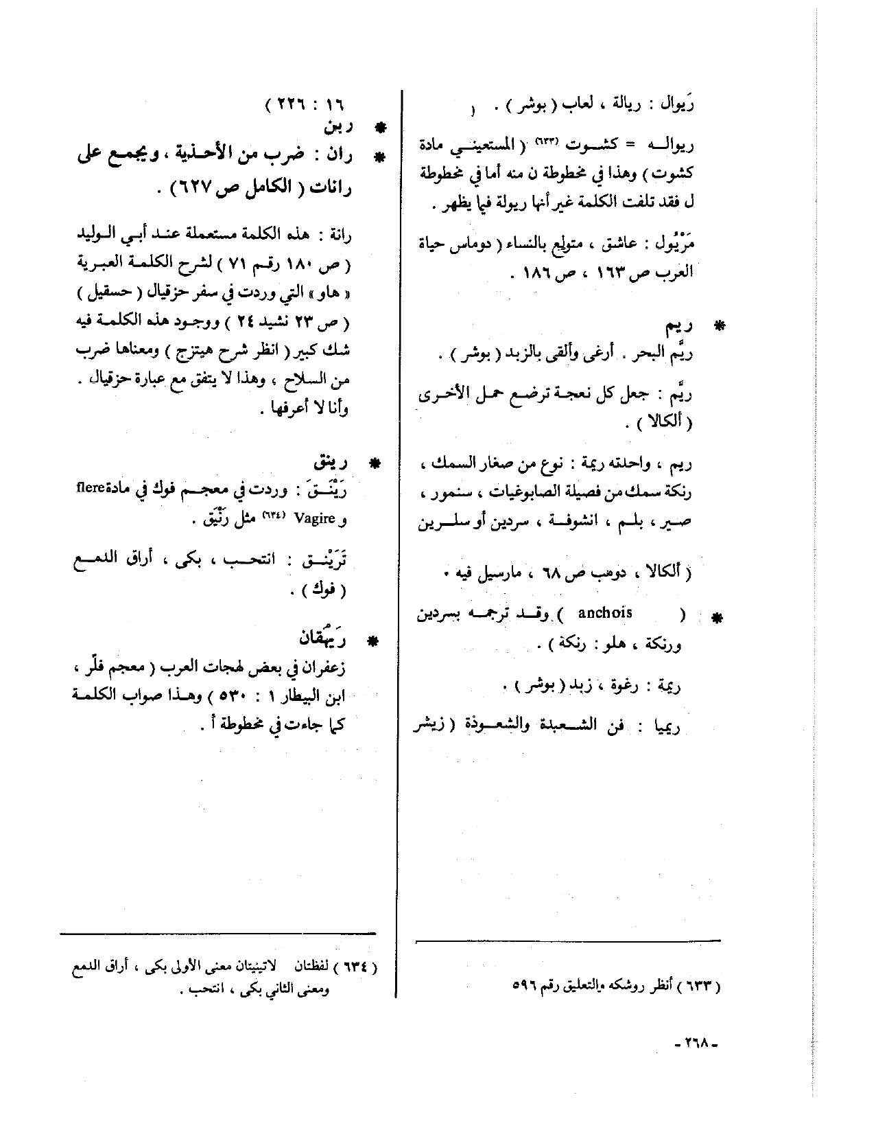 • رينق: رَيْنَقَ: وردت في معجم فوك في مادة flere و Vagire مثل رَنْيَق.