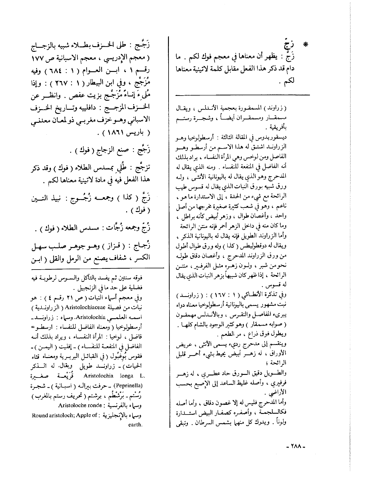 • زجّ: زَجَّ: يظهر أن معناها في معجم فوك لكم، مادام قد ذكر هذا الفعل مقابل كلمة لاتينية معناها لكم.
