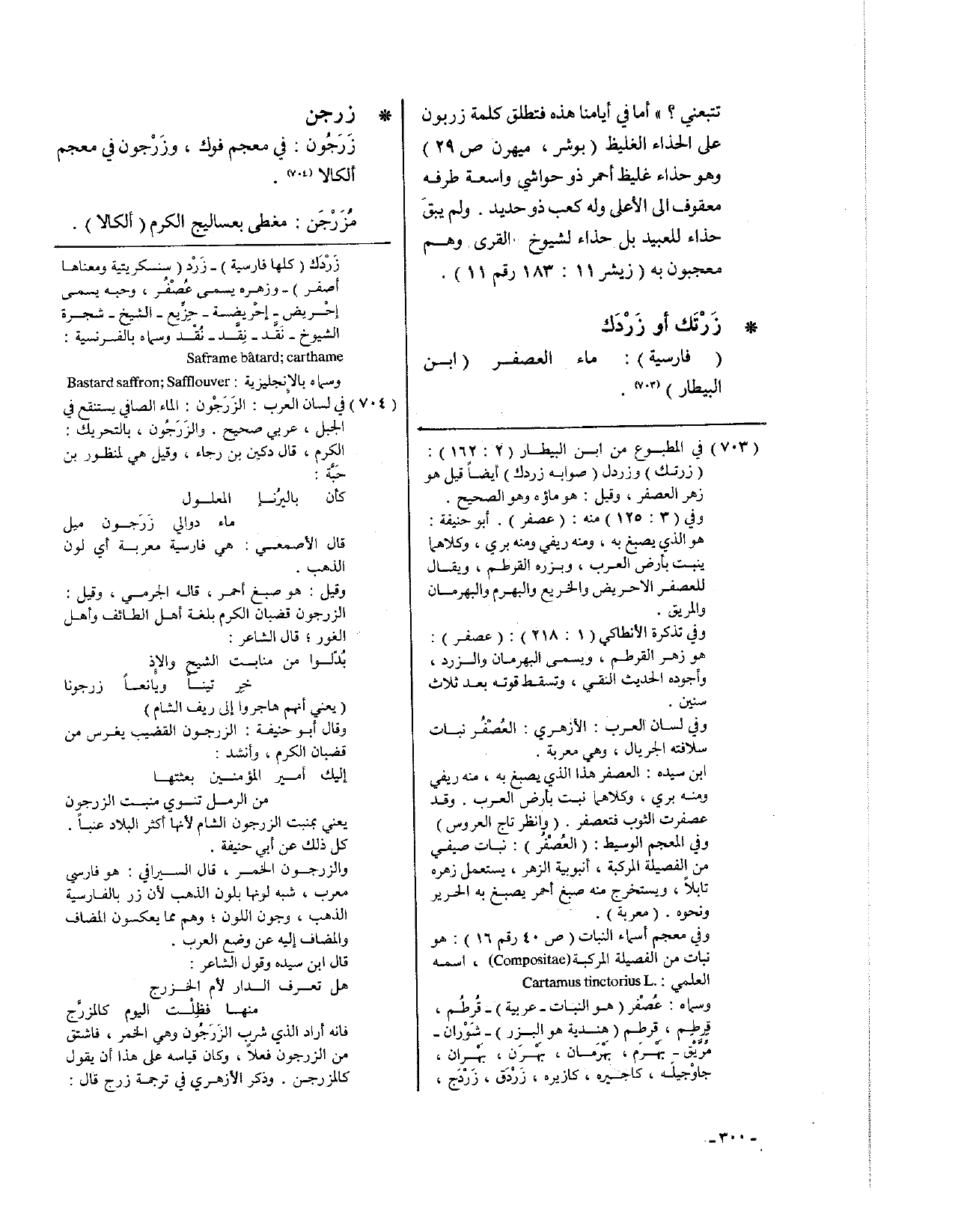 • زَرْتَك أو زَرْدَك: (فارسية): ماء العصفر (ابن البيطار).