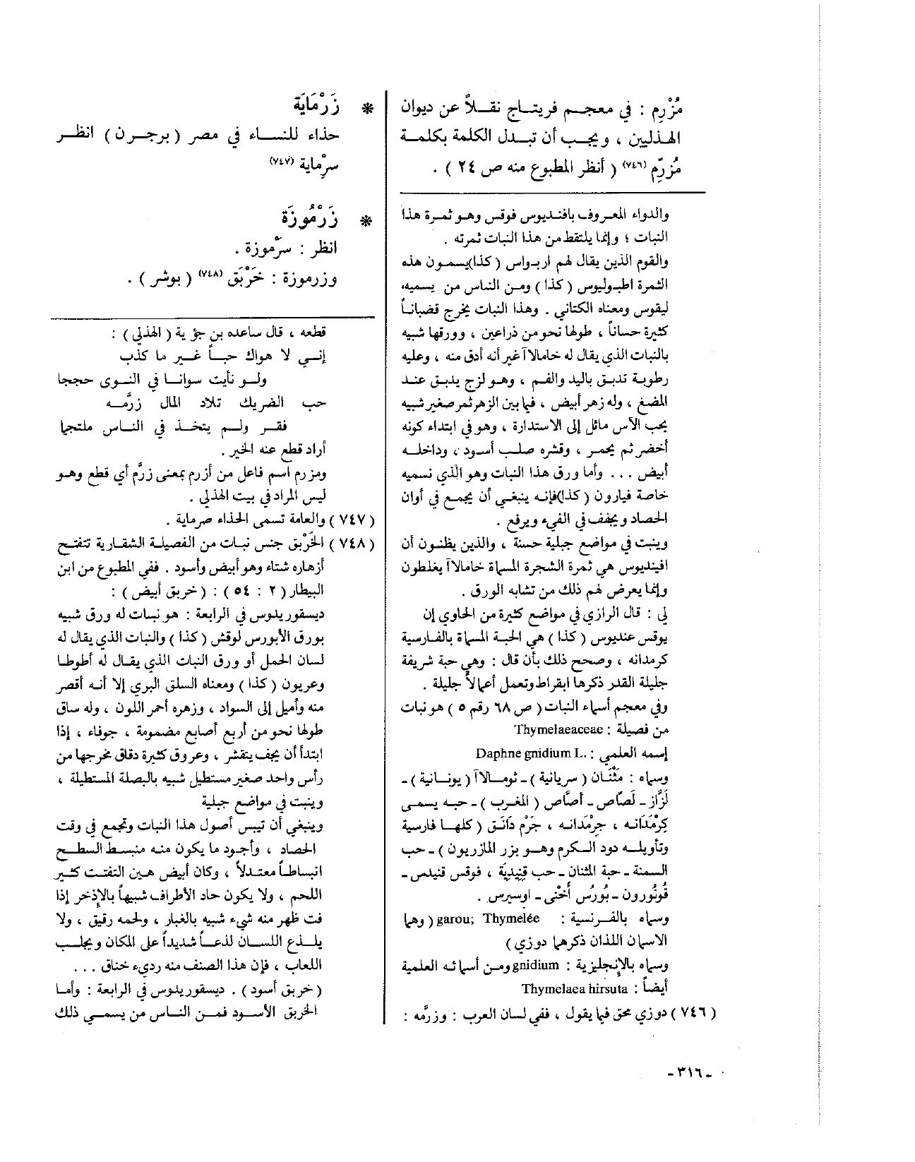 مُزْرِم: في معجم فريتاج نقلاً عن ديوان الهذليين، ويجب أن تبدل الكلمة بكلمة مُزرِّم (انظر المطبوع منه ص24).