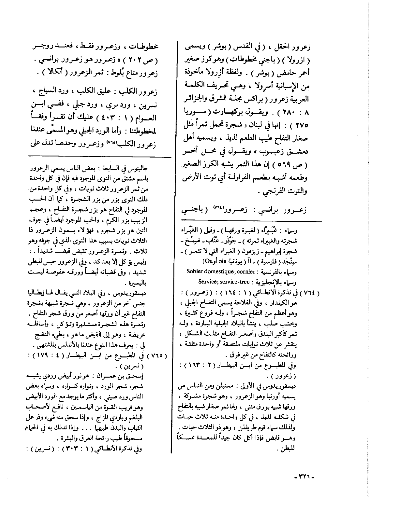 زعرور براني: زعرور (باجني مخطوطات)، وزعرور فقط، فعند روجر (ص202): ((زعرور وهو زعرور براني))، زعرور متاع بُلوط: ثمر الزعرور (ألكالا).