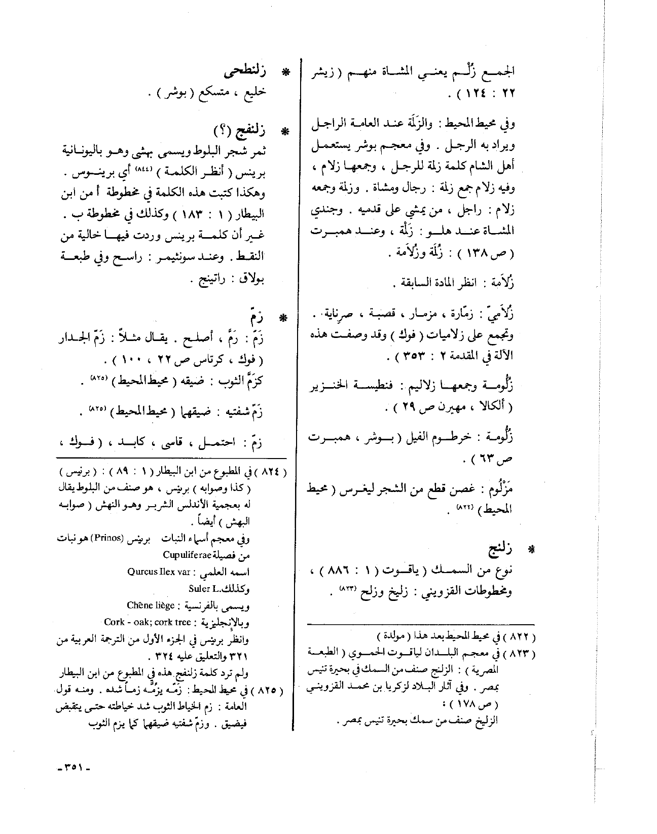زُلاَمِيّ: زمَارة، مزمار، قصبة، صرِناية. وتجمع على زلاميات (فوك)، وقد وصفت هذه الآلة في المقدمة (2: 353).
