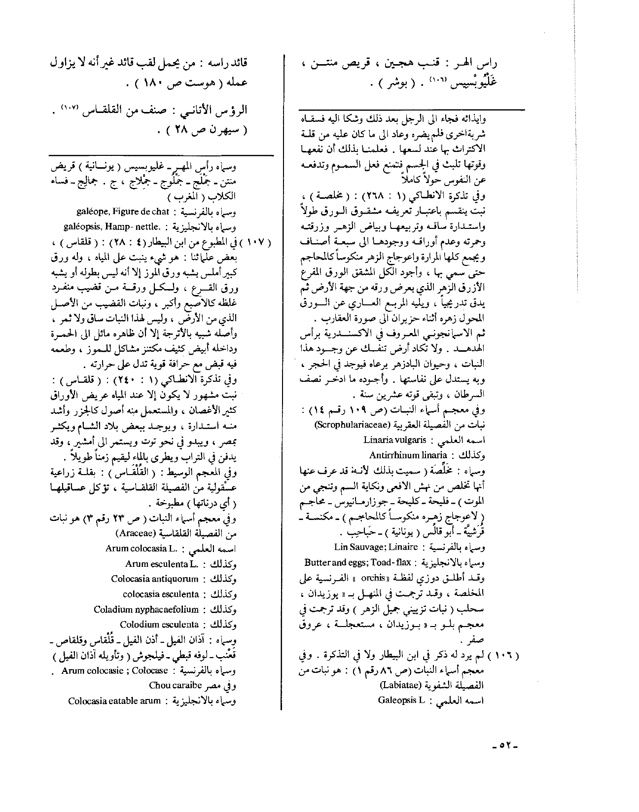 الرؤوس الأتاني: صنف من القلقاس (سيهرن ص28).