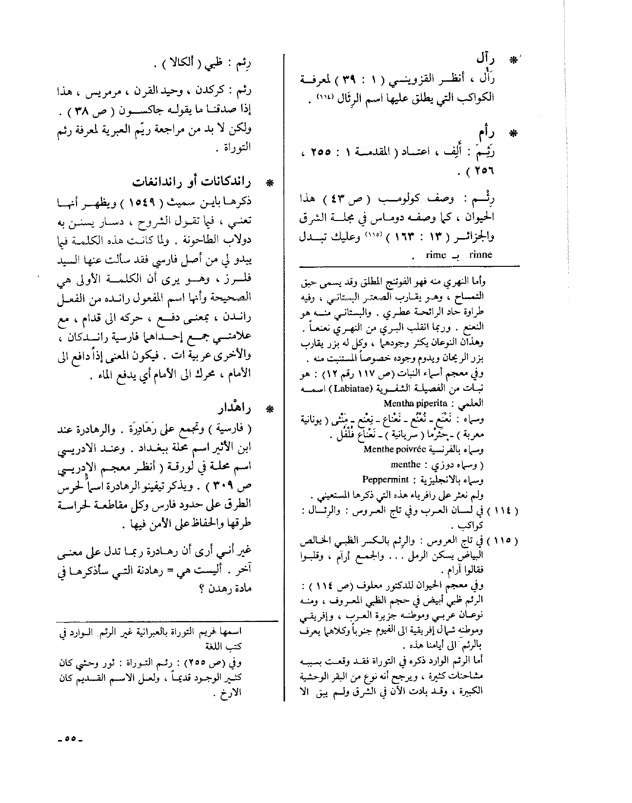• رأل: رَأْل، انظر القزويني (1: 39) لمعرفة الكواكب التي يطلق عليها اسم الرِئَال.