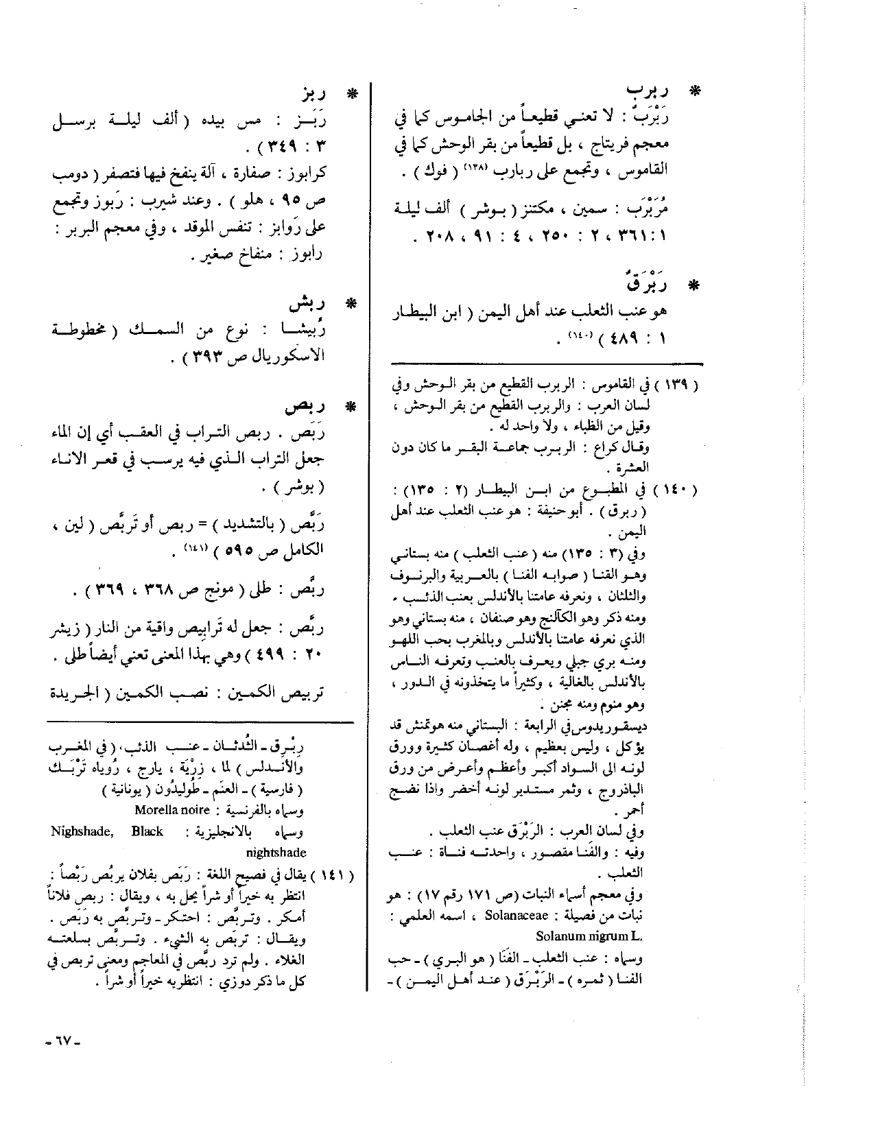 • رَبْرَقٌ: هو عنب الثعلب عند أهل اليمن (ابن البيطار 1: 489).
