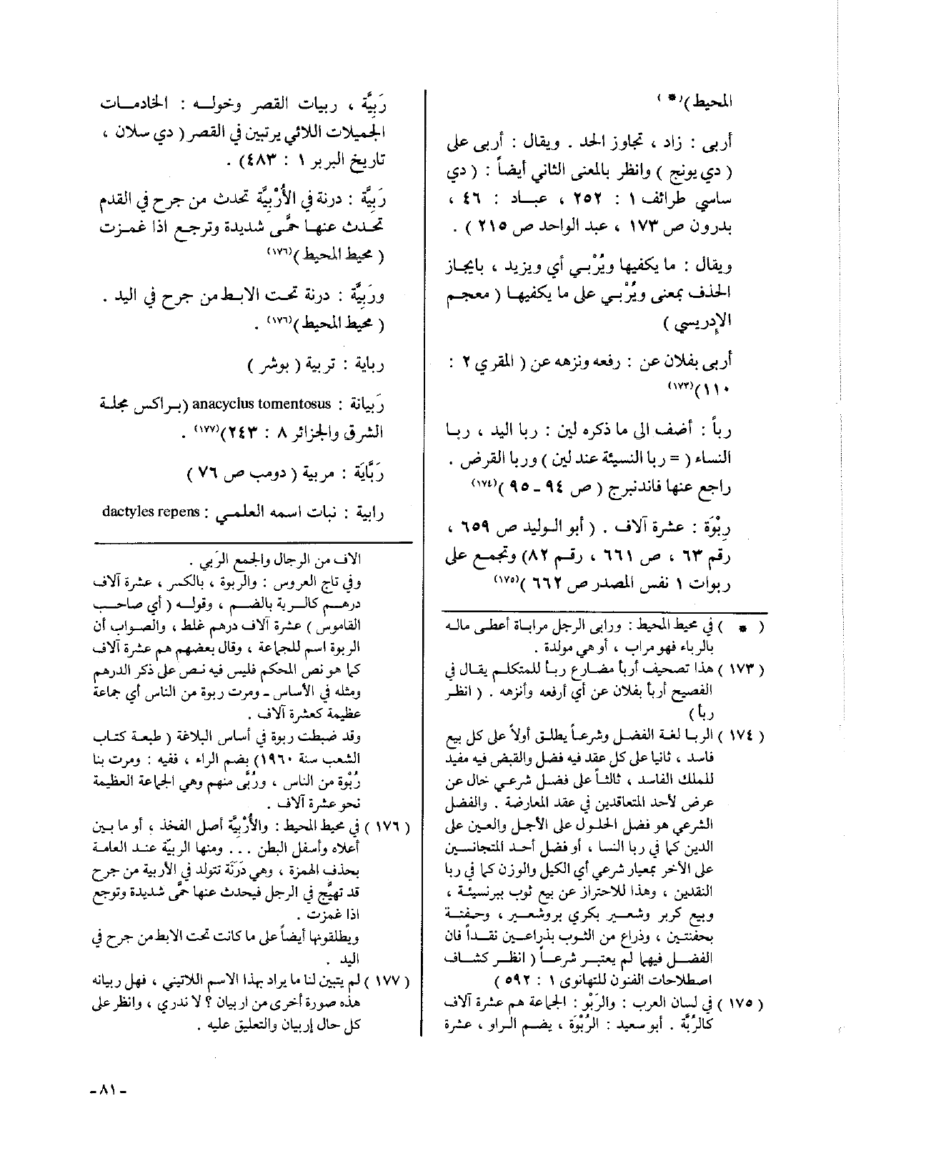 رباً: أضف إلى ما ذكره لين: ربا اليد، ربا النساء (= ربا النسيئة عند لين)، وربا القرض. راجع عنها فاندنبرج (ص94 - 95).
