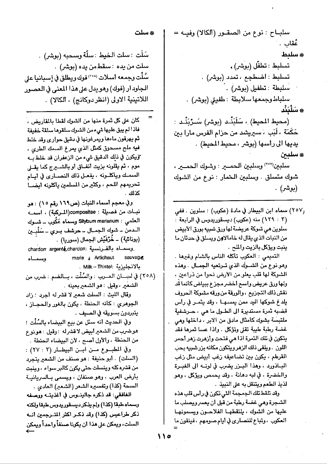 • سلبين: سلبين وسلبين الحمير: وشوك الحمير، شوك متسلق. وسلبين الخمار: نوع من الشوك (بوشر).