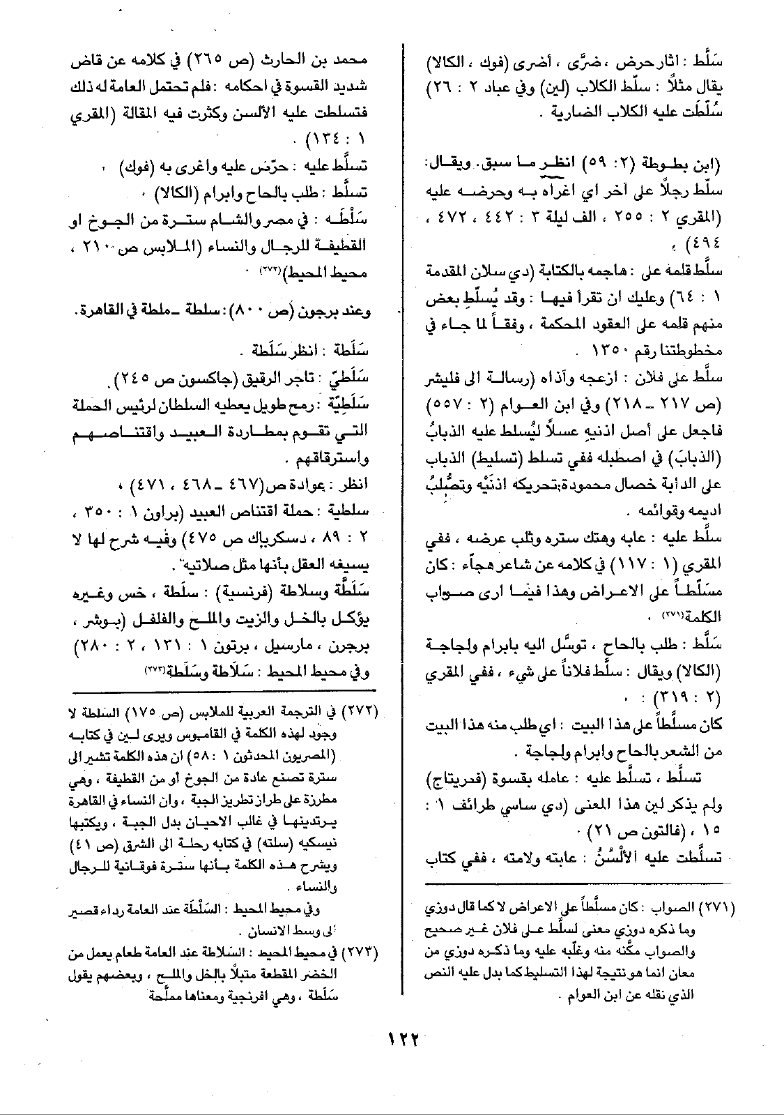 سلَّط قلمه على: هاجمه بالكتابة (دي سلان المقدمة 1: 64) وعليك ان تقرأ فيها: وقد يُسلّطِ بعض منهم قلمه على العقود المحكمة، وفقاً لما جاء في مخطوطتنا رقم 1350.
