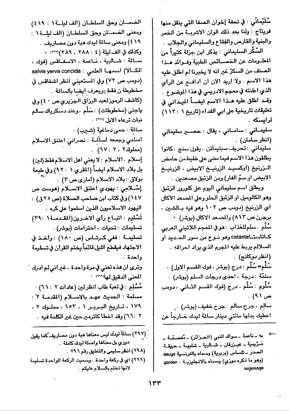 إسلام. الإسلام: لا يعني أهل الإسلام فقط (لين) بل بلاد الإسلام أيضاً (المقري 1: 92) وفي طبعة بولاق: بلاد الإسلام (أماري ص3).