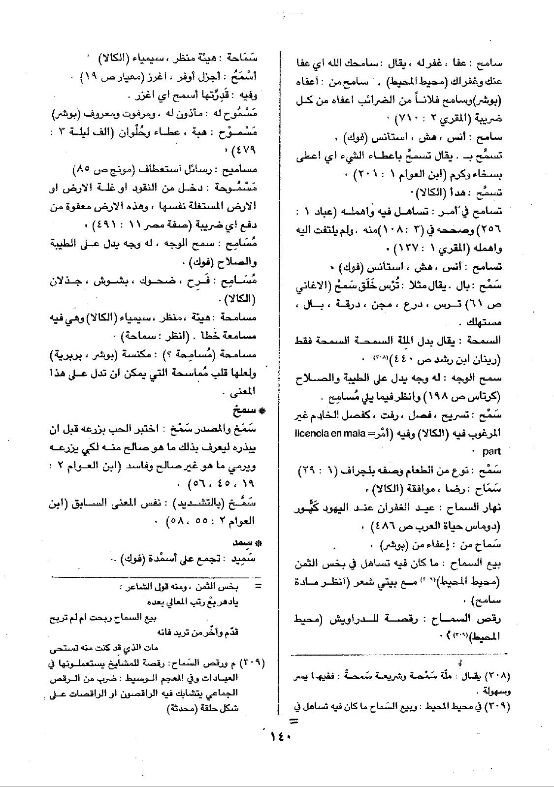 سَمْح: نوع من الطعام وصفه بلجراف (1: 29) سَمَاح: رضا، موافقة (الكالا).