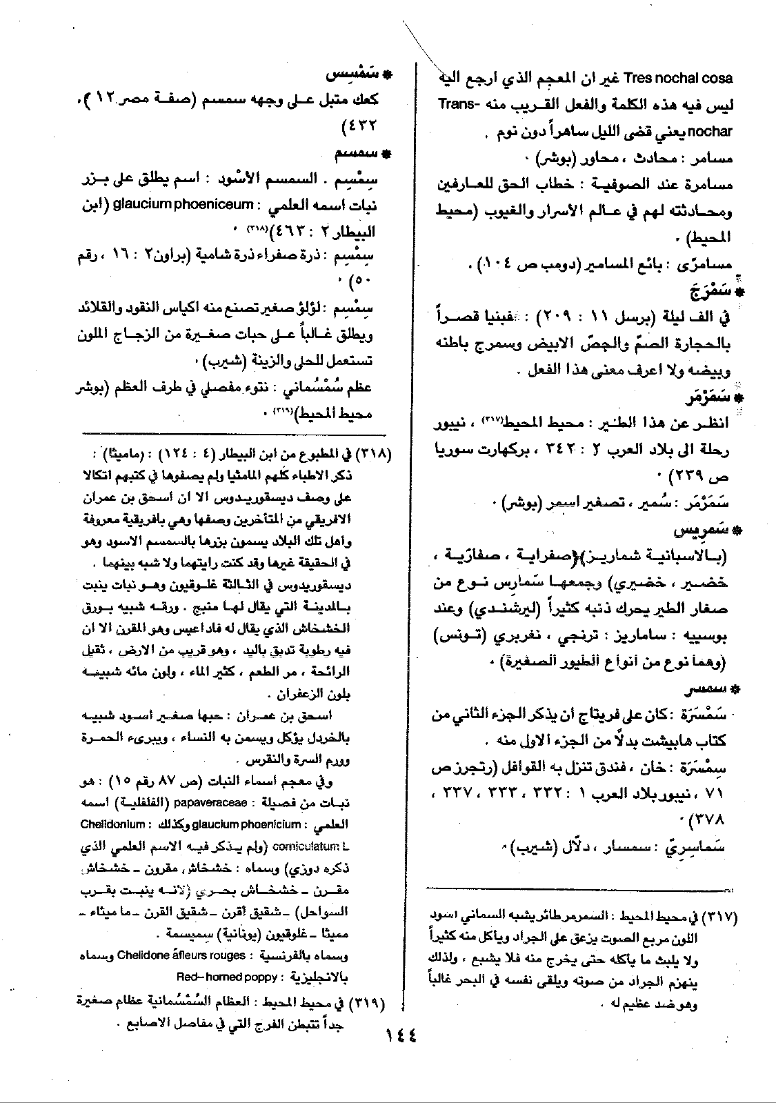 • سَمَرْمَر: انظر عن هذا الطير: محيط المحيط، نيبور رحلة إلى بلاد العرب 2: 342، بركهارت سوريا ص239).