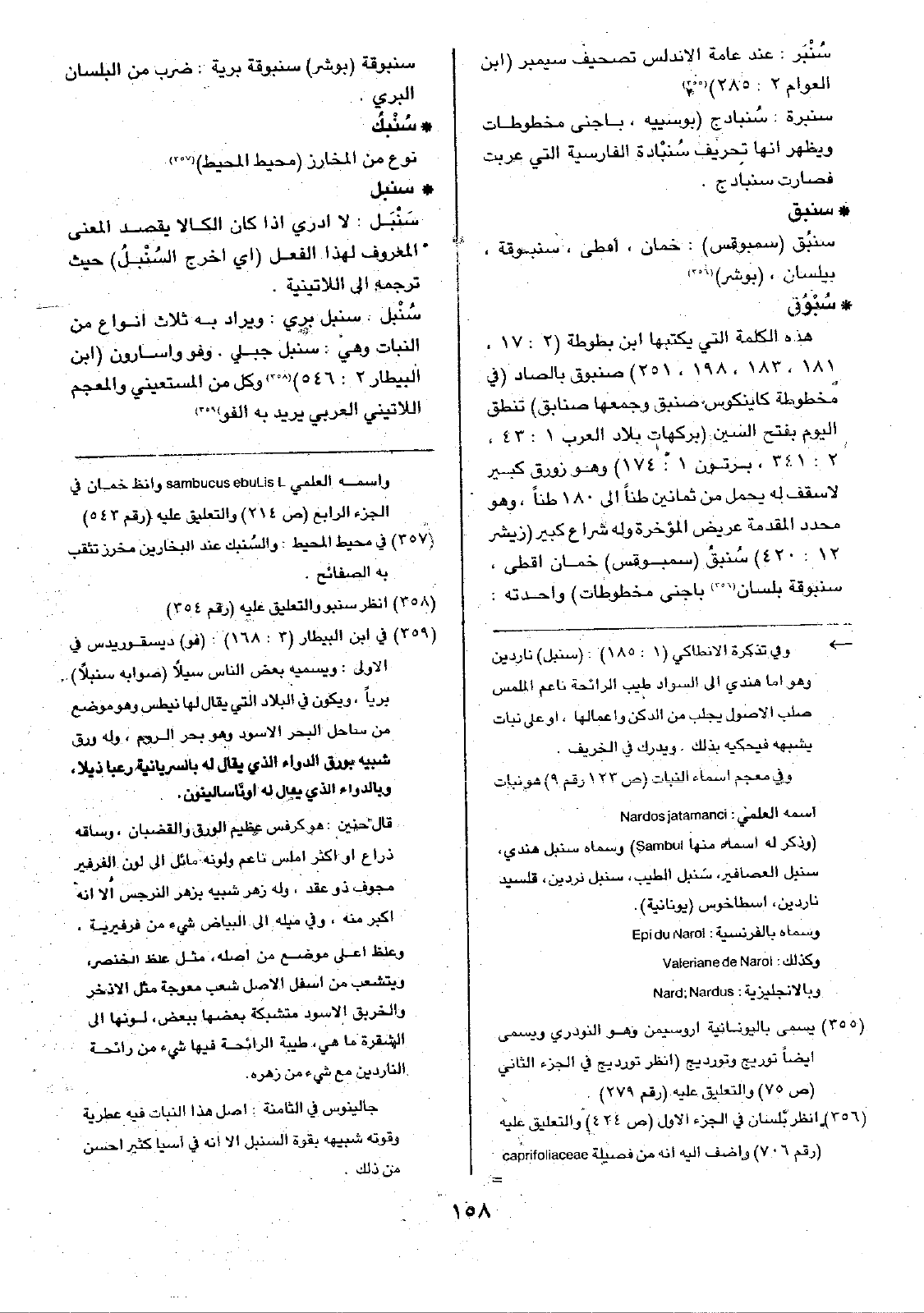 سُنْبل: سنبل بري: ويراد به ثلاث أنواع من النبات وهي: سنبل جبلي. وفو واسارون (ابن البيطار 2: 546) وكل من المستعيني والمعجم اللاتيني العربي يريد به الفو