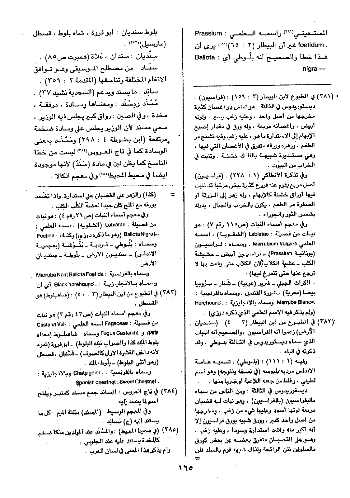 المستعيني واسمه العلمي: Prassium foetidum. غير أن البيطار (2: 64) يرى أن هذا خطأ والصحيح إنه بلّوطي أي: Ballota nigra بلوط سنديان: أبو فروة، شاه بلوط، قسطل (مارسيل).