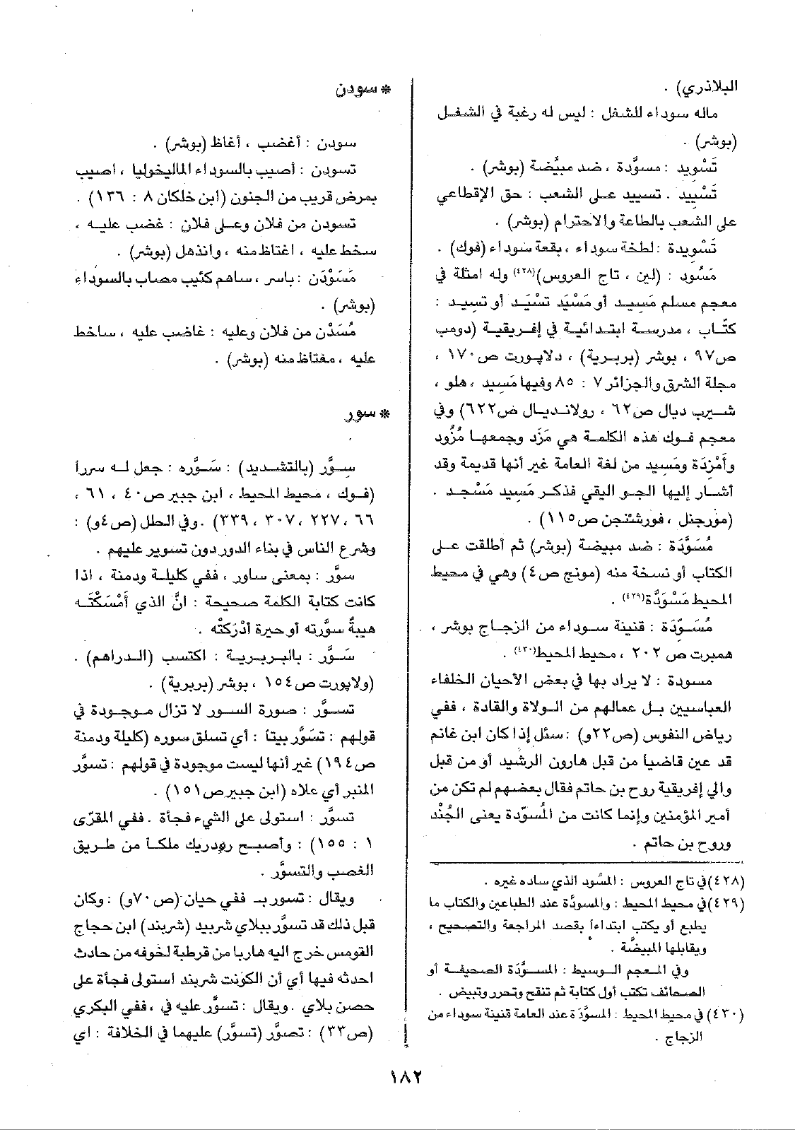 مُسَوَّدَة: ضد مبيضة (بوشر) ثم أطلقت على الكتاب أو نسخة منه (مونج ص4) وهي في محيط المحيط مَسْوَدَّة.