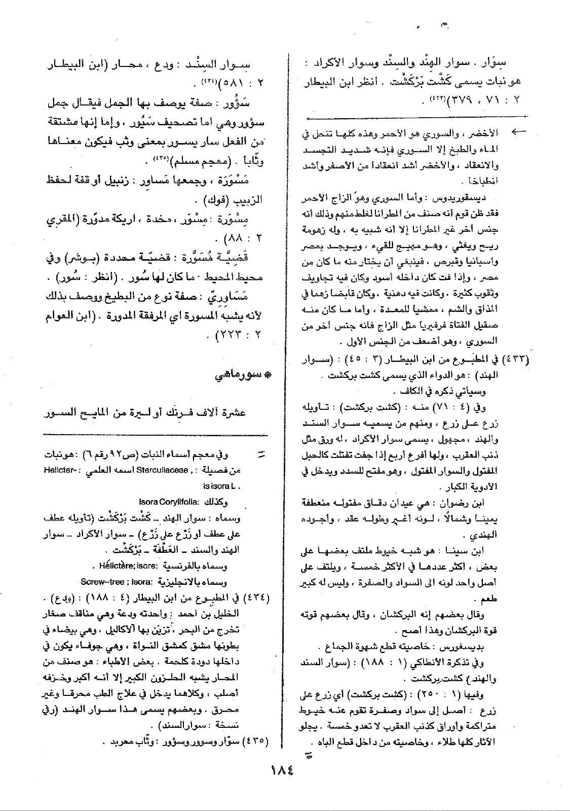 سِوَار. سوار الهِنْد والسِنْد وسوار الأكراد: هو نبات يسمى كَشْت بَرْكَشْت. انظر ابن البيطار 2: 71، 379).