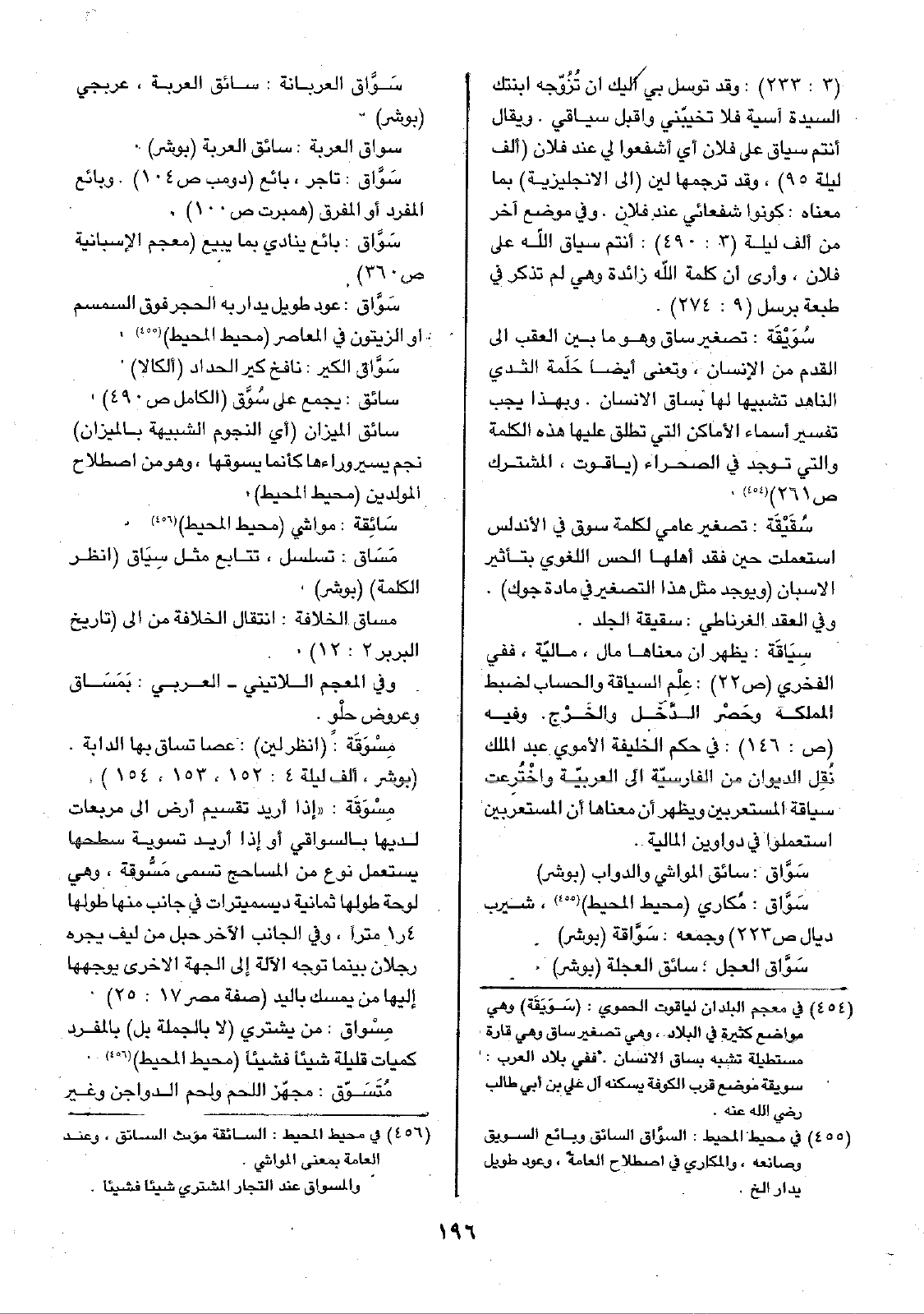 (3: 233): وقد توسل بس إليك أن تُزُوّجه ابنتك السيدة آسية فلا تخيبّني واقبل سياقي. ويقال أنتم سياق على فلان أي اشفعوا لي عند فلان (ألف ليلة 95)، وقد ترجمها لين (إلى الإنجليزية) بما معناه: كونوا شفعائي عند فلان. وفي موضع آخر من ألف ليلة (3: 490): أنتم سياق الله على فلان، وأرى أن كلمة الله زائدة وهي لم تذكر في طبعة برسل (9: 274).