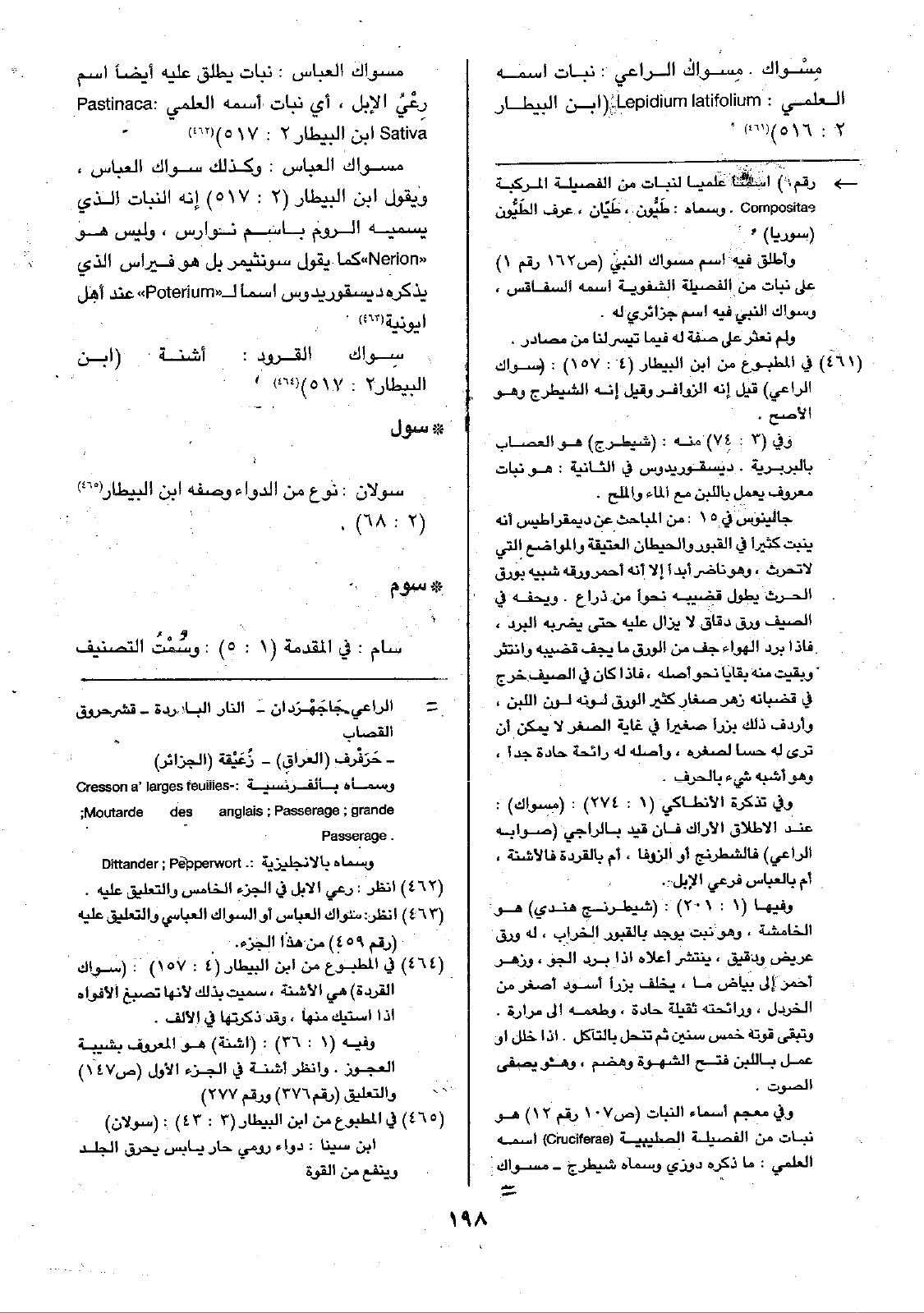 مِسْواك. مِسواكْ الراعي: نبات اسمه العلمي: Lepidium latifolium ( ابن البيطار 2: 516).