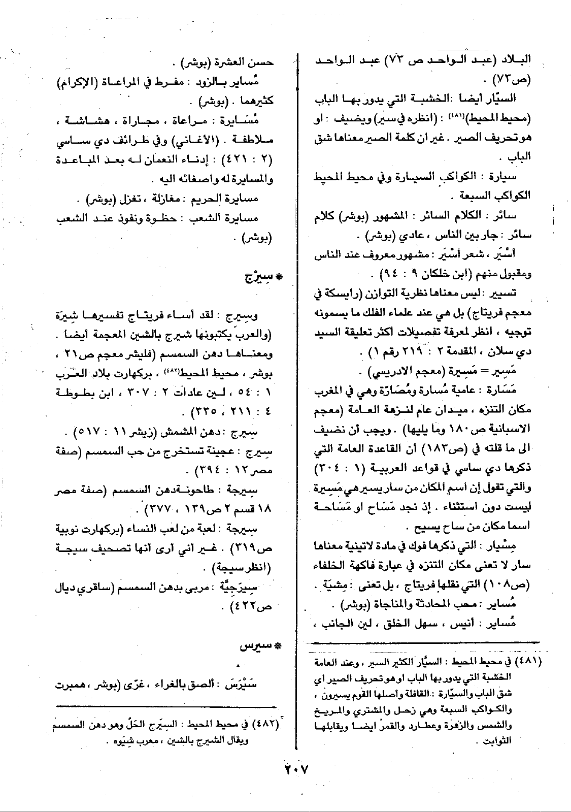 وسِيرج: لقد أساء فريتاج تفسيرها شِيرَة (والعرب يكتبونها شيرج بالشين المعجمة أيضاً. ومعناها دعن السمسم (فليشر معجم ص21، بوشر، محيط المحيط، بركهارت بلاد العرب 1: 54، لين عادات 2: 307، ابن بطوطة 4: 211، 335).