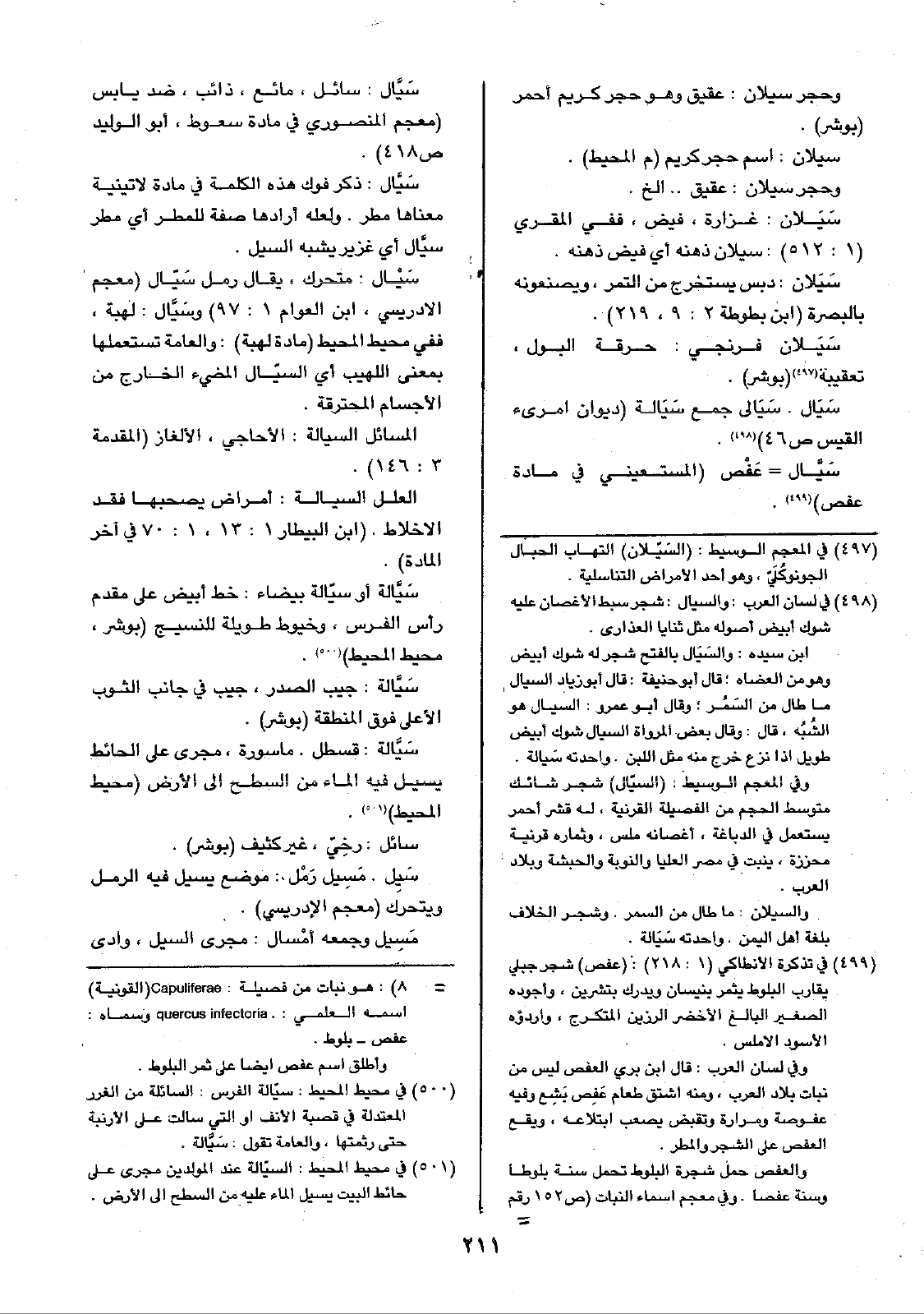 سَيَّال: ذكر فوك هذه الكلمة في مادة لاتينية معناها مطر. ولعله أرادها صفة للمطر أي مطر سيَّال أي غزير يشبه السيل.