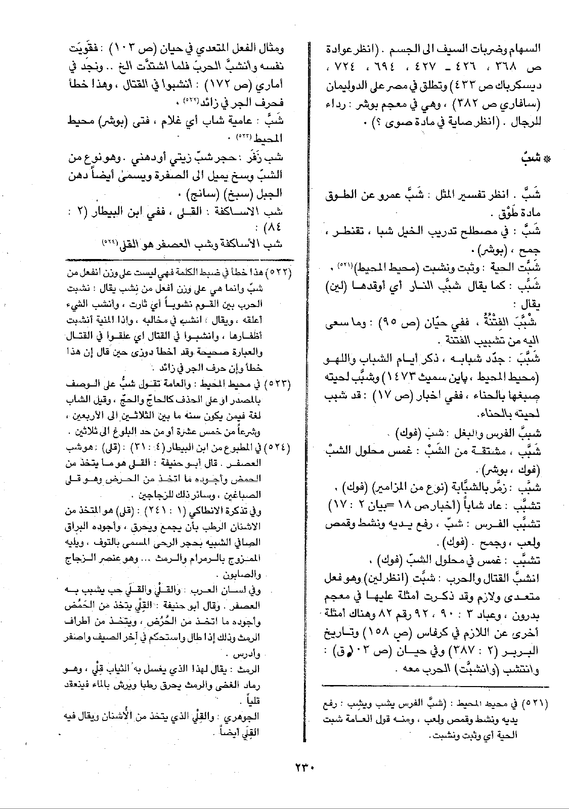 تشبَّب: عاد شاباً (أخبار ص18 = بيان 2: 17) تشبَّب الفرس: شبّ، رفع يديه ونشط وقمص ولعب، وجمح. (فوك).