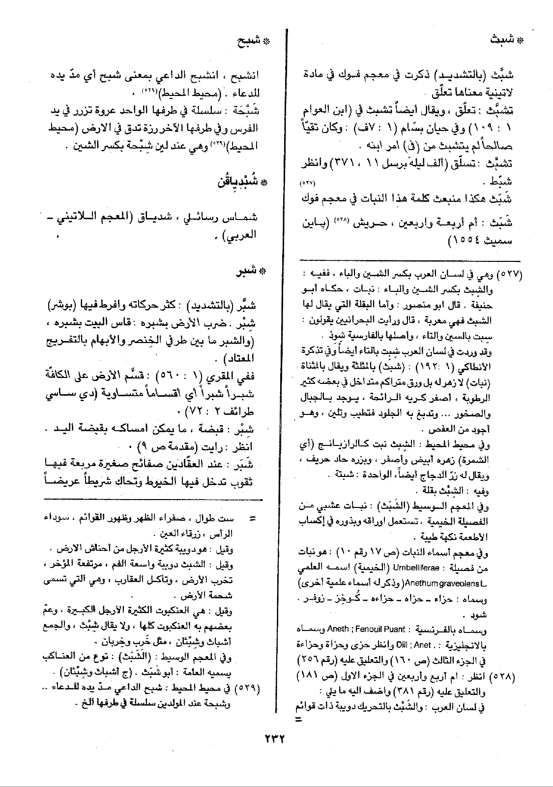 • شبث: شبَّث (بالتشديد) ذكرت في معجم فوك في مادة لاتينية معناها تعلّق.