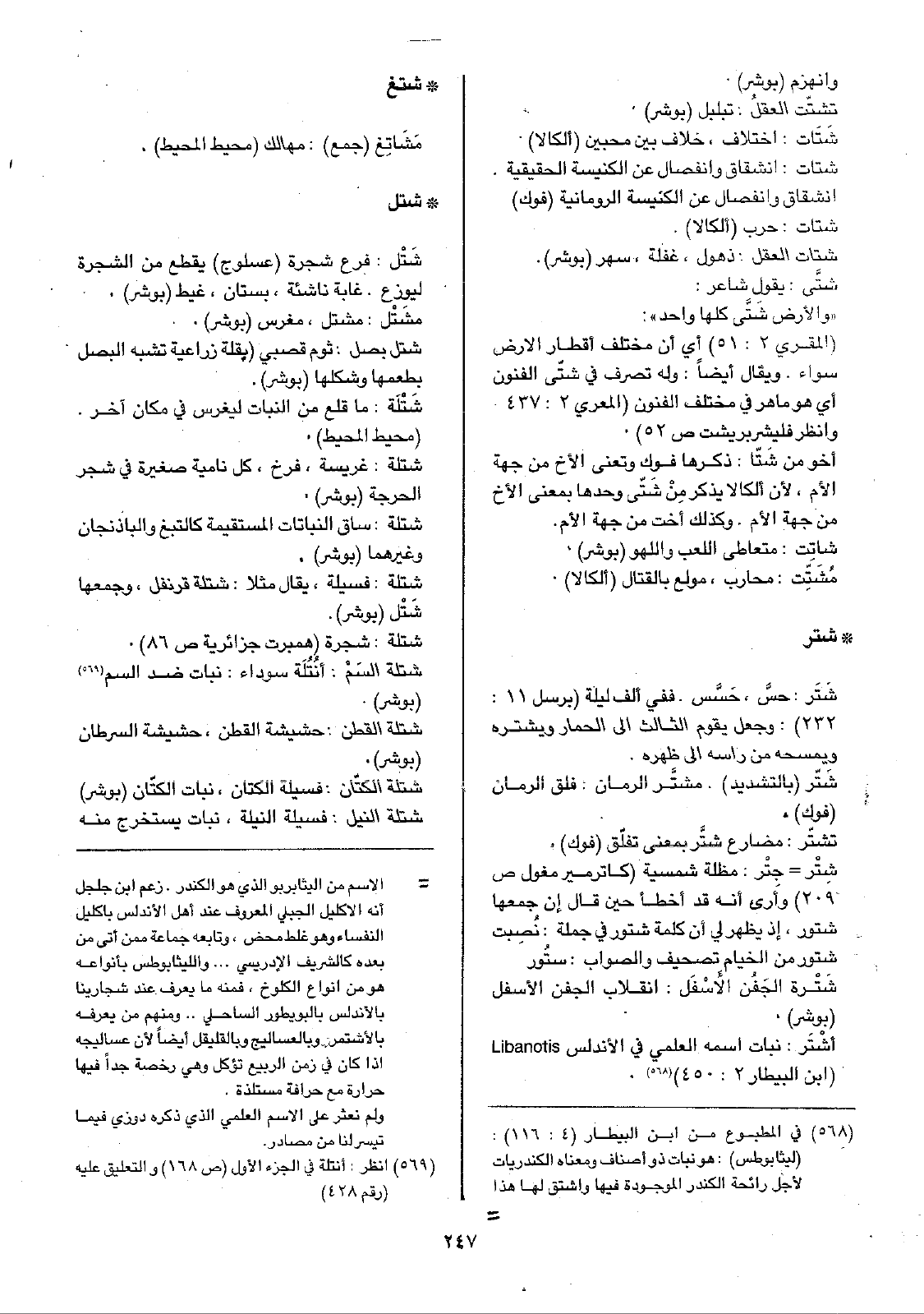 أخو من شَتّا: ذكرها فوك وتعنى الأخ من جهة الأم، لأن ألكالا يذكر مِنْ شَتّى وحدها بمعنى الأخ من جهة الأم. وكذلك أخت من جهة الأم.