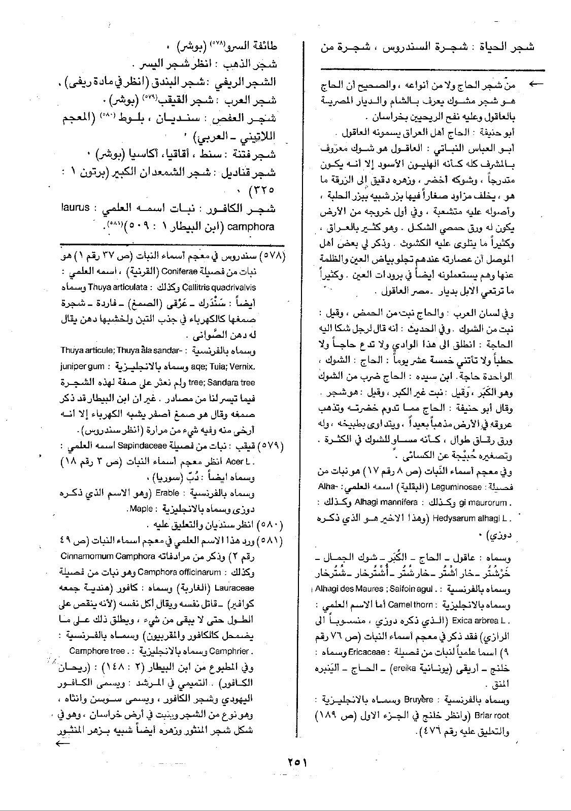 شجر الكافور: نبات اسمه العلمي: laurus camphora ( ابن البيطار 1: 509).