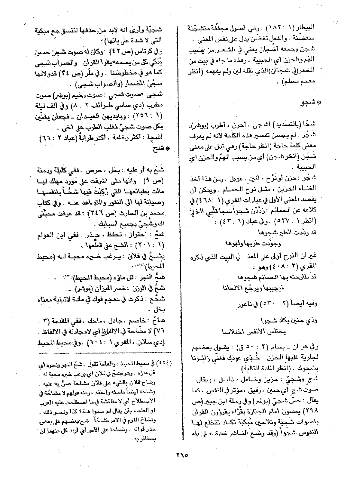 • شح: شَحّ به أو عليه: بخل، حرص. ففي كليلة ودمنة (ص9): وإنها متى أشرفت على مورد مهلك لها مالت بطبائعها التي رُكِبّتَ فيها شحَّاً بأنفسها وصيانة لها إلى النفور والتباعد عنه. وفي كتاب محمد بن الحارث (ص346): قد عرفت محبَّتي لك وشُحِيّ بجميع أسبابك.
