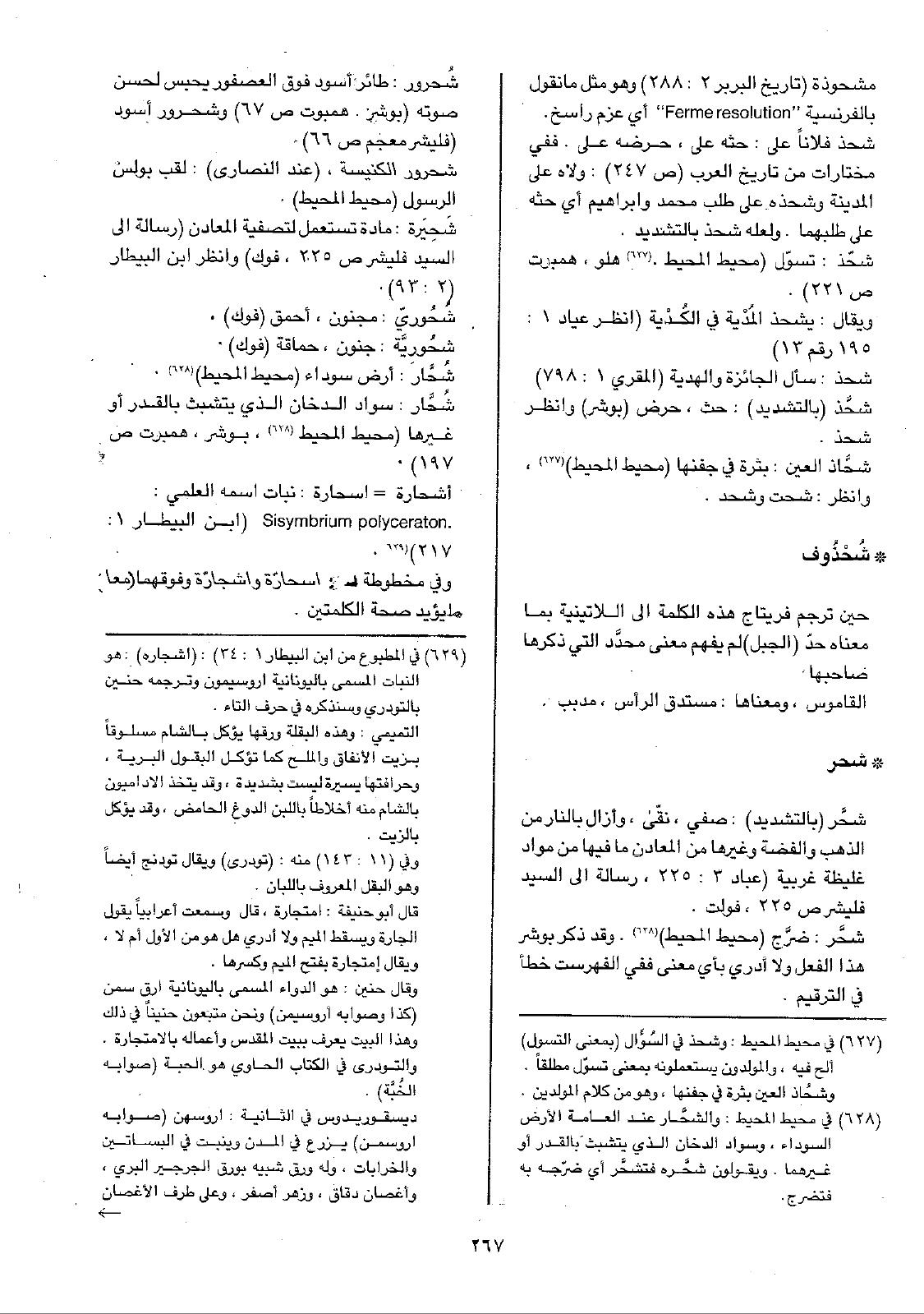 • شُحْذُوف: حين ترجم فريتاج هذه الكلمة إلى اللاتينية بما معناه حدّ (الجبل) لم يفهم معنى محدَّد التي ذكرها صاحبها القاموس، ومعناها: مستدق الرأس، مدبب.