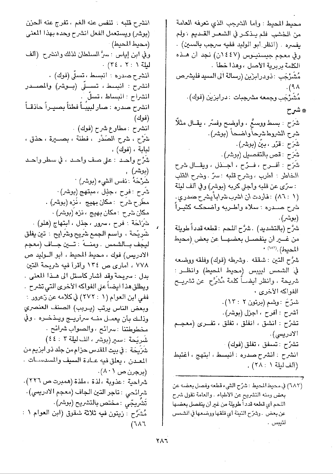 تشرّح: تسفق، تفلق (فوك) انشرح: انشرح صدره: انبسط، ابتهج، اغتبط (ألف ليلة 1: 28).