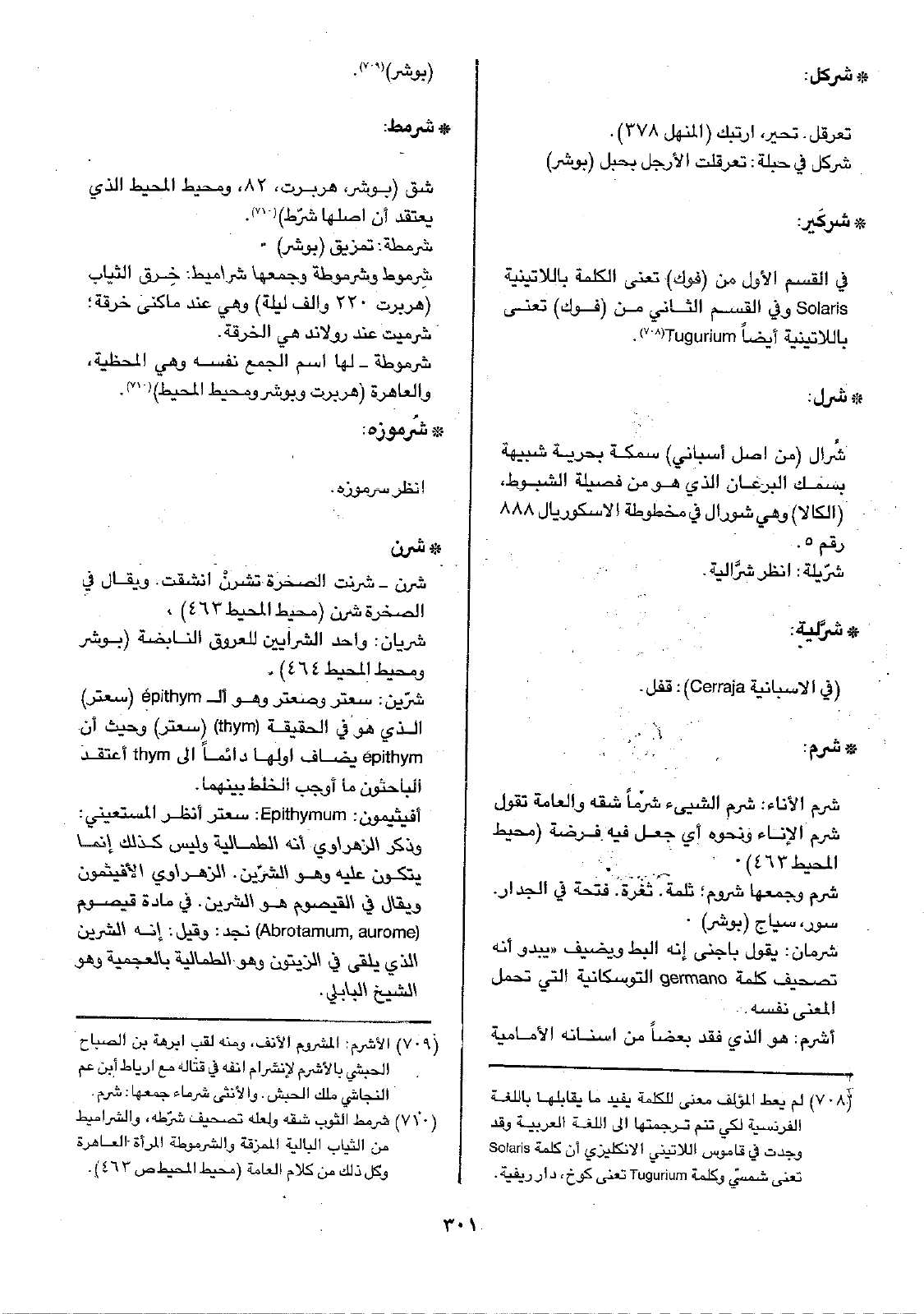• شركَير: في القسم الأول من (فوك) تعنى الكلمة باللاتينية Solaris وفي القسم الثاني من (فوك) تعنى باللاتينية أيضاً Tugurium.