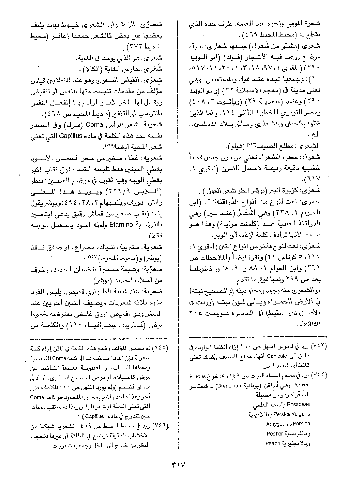 شعرية: شعر الرأس Coma ( فوك) وفي المصدر نفسه تجد هذه الكلمة في مادة Capillus التي تعنى شعر اللحية أيضاً.
