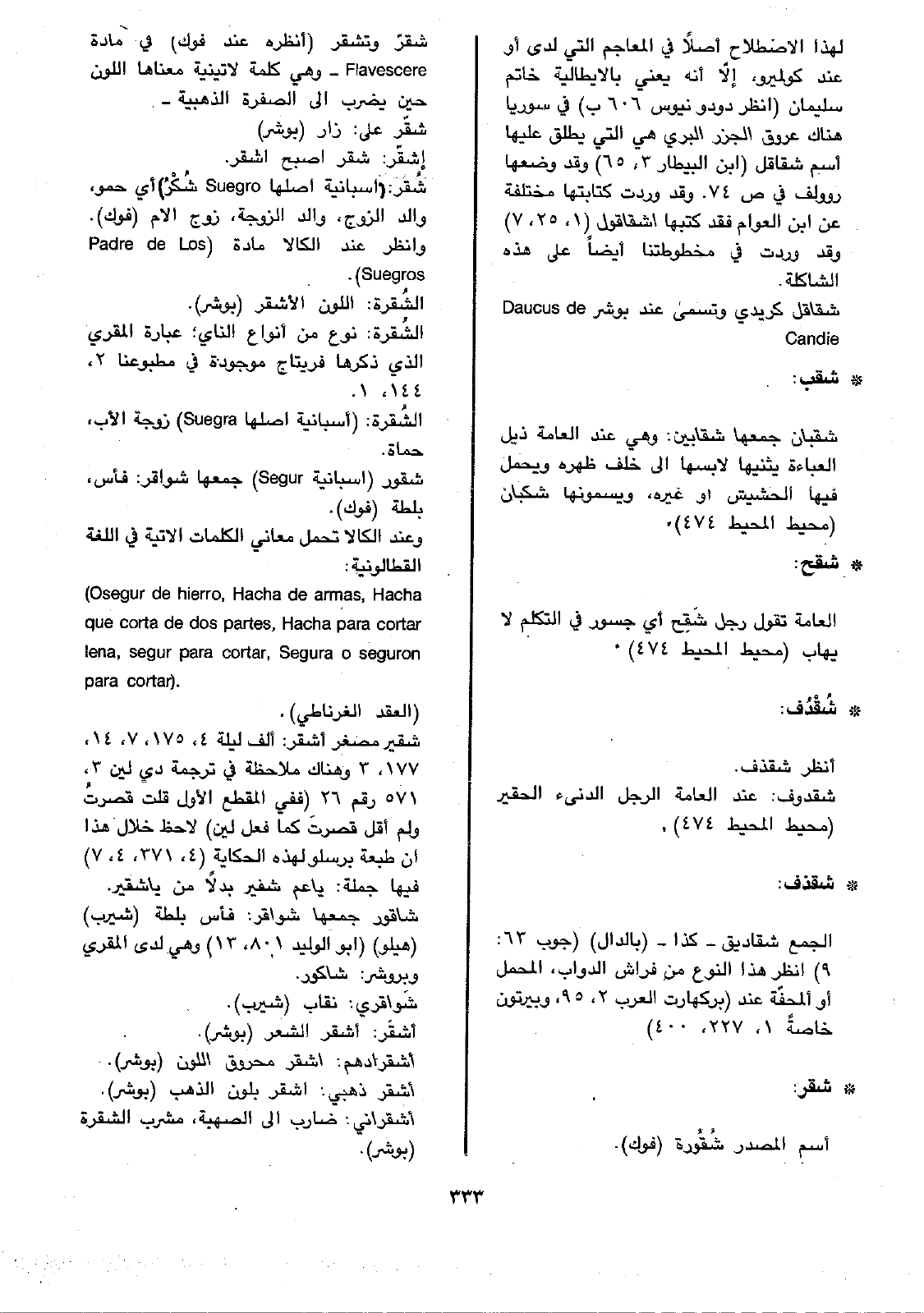 الشُقرة: نوع من أنواع الناي؛ عبارة المقري الذي ذكرها فريتاج موجودة في مطبوعنا 2، 144، 1.