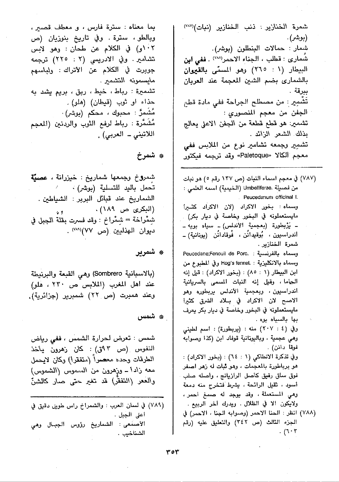 • شمس: شمس: تعرض لحرارة الشمس، ففي رياض النفوس (ص93 ق): كان زهرون يأخذ الطرقات وحده معصراً (متفقراً) وكان لا يحمل معه زاداً - وزهرون من السموس (الشموس) والععر (التفقُّر) قد تغير حتى صار كالشنّ