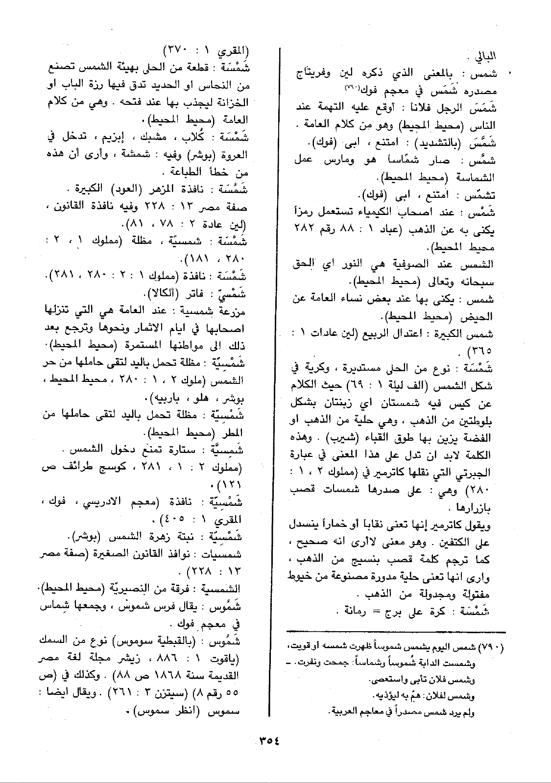 شَمْس: عند اصحاب الكيمياء تستعمل رمزاً يكنى به عن الذهب (عباد 1: 88 رقم 282 محيط المحيط).