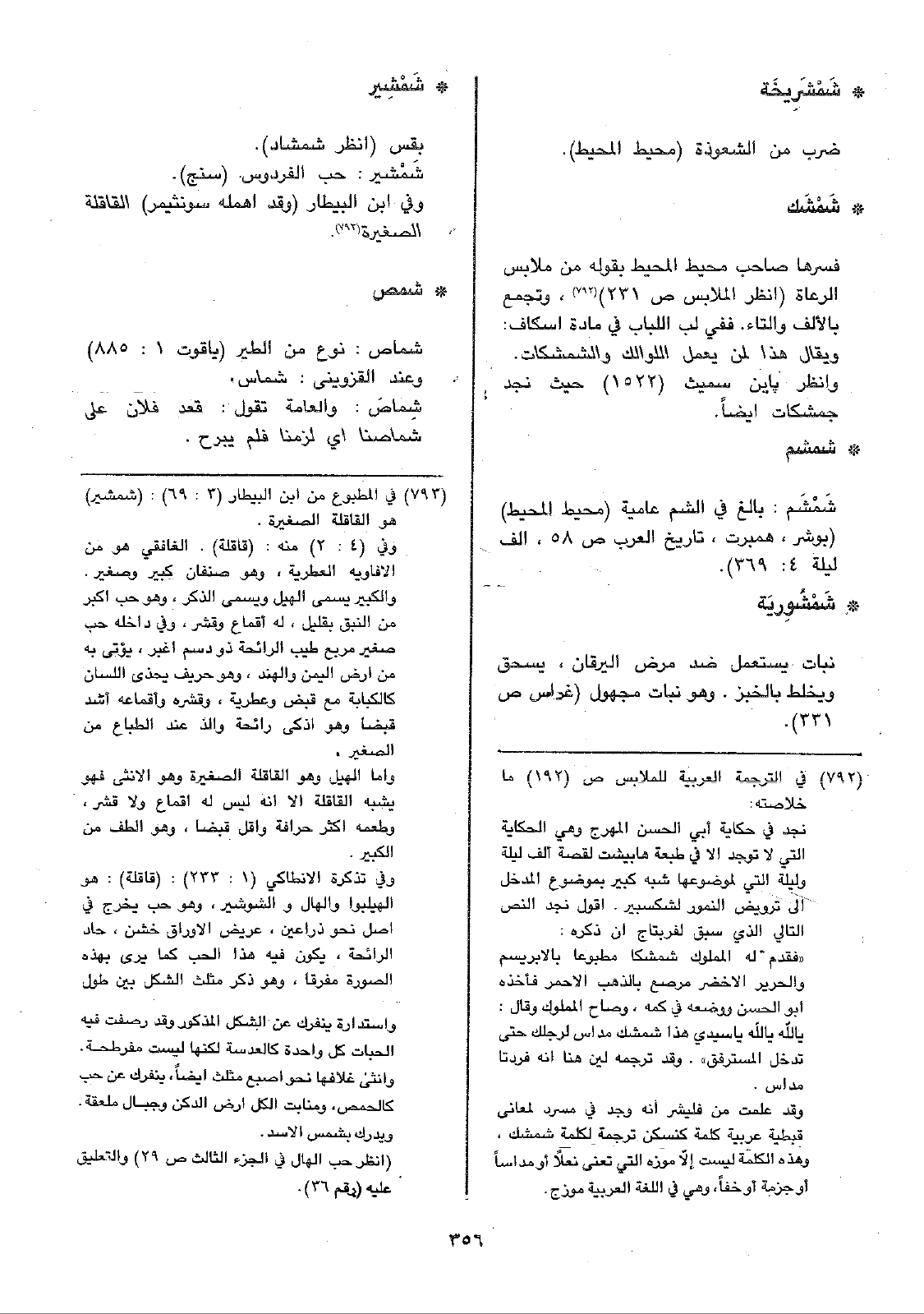 • شمشم: شَمْشَم: بالغ في الشم عامية (محيط المحيط) (بوشر، همبرت، تاريخ العرب ص58، ألف ليلة 4: 369).