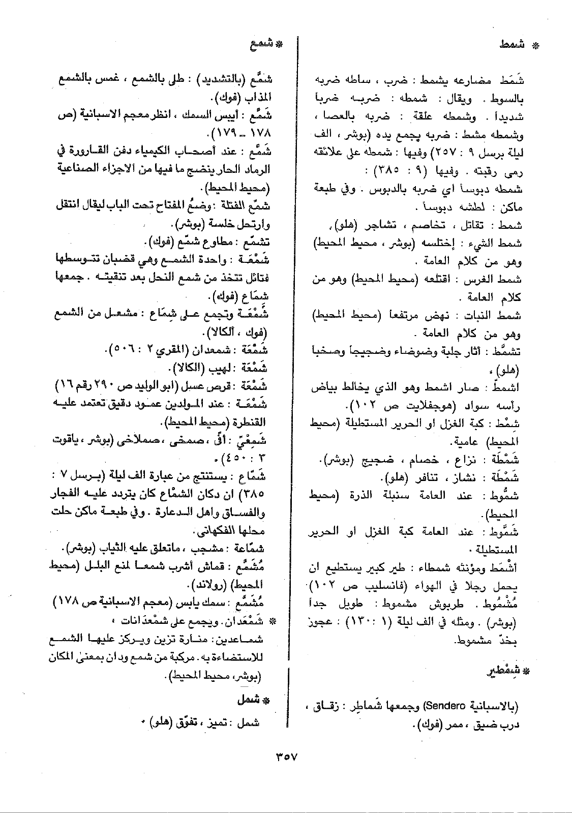 • شِمْطير: (بالأسبانية Sendero) وجمعها شَماطِر: زقاق، درب ضيق، ممر (فوك).