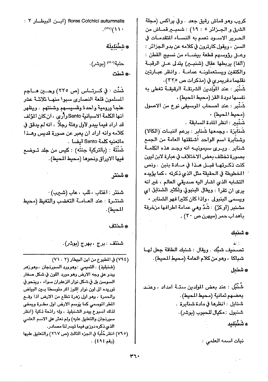 • شَنْبَليد: نبات اسمه العلمي: flores Colchici autumnalis ( ابن البيطار 2: 110).