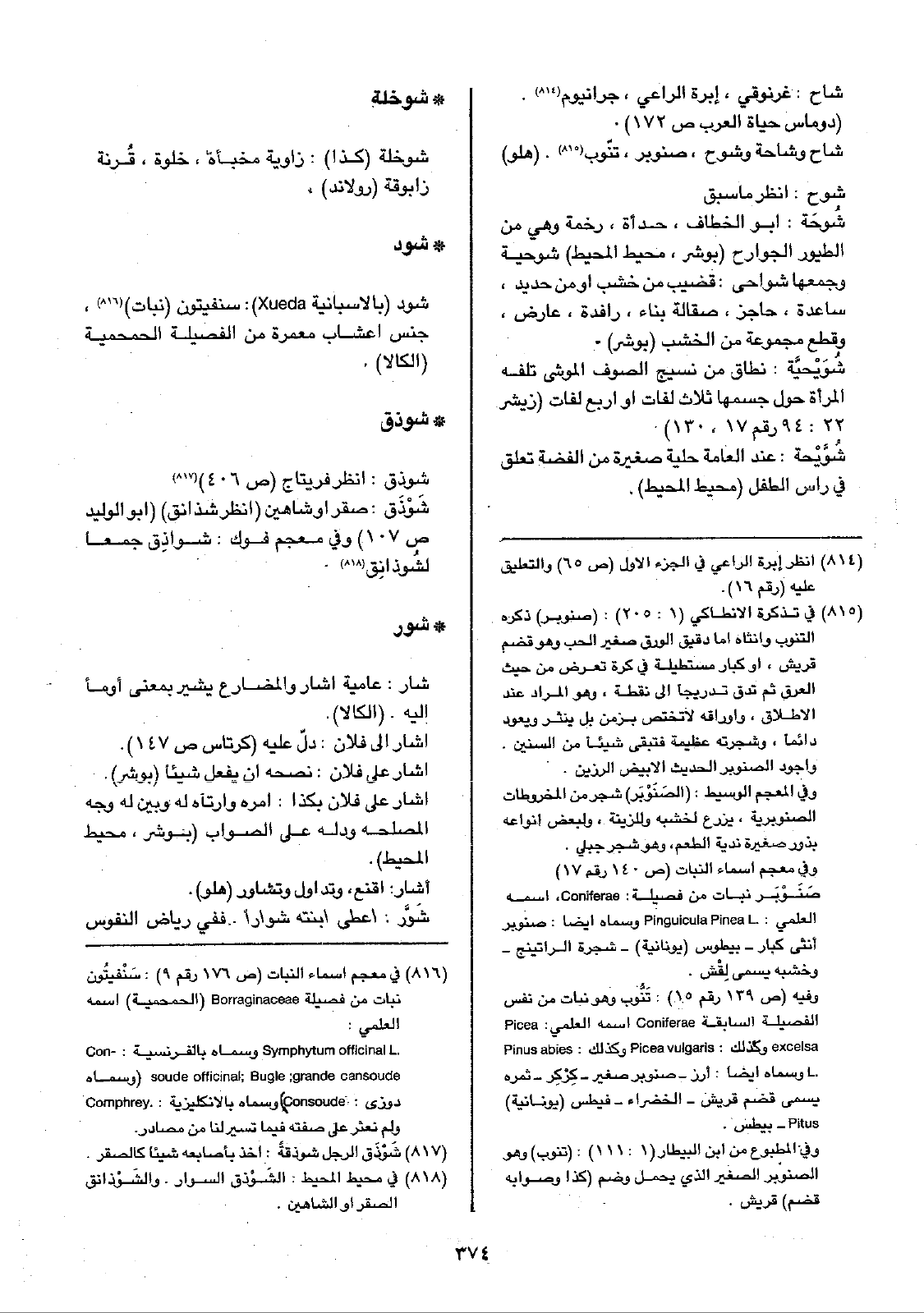• شوذق: شوذق: انظر فريتاج (ص406) شَوْذَق: صقر أو شاهين (انظر شذانق) (أبو الوليد ص107) وفي معجم فوك: شواذِق جمعاً لشُوذانِق.