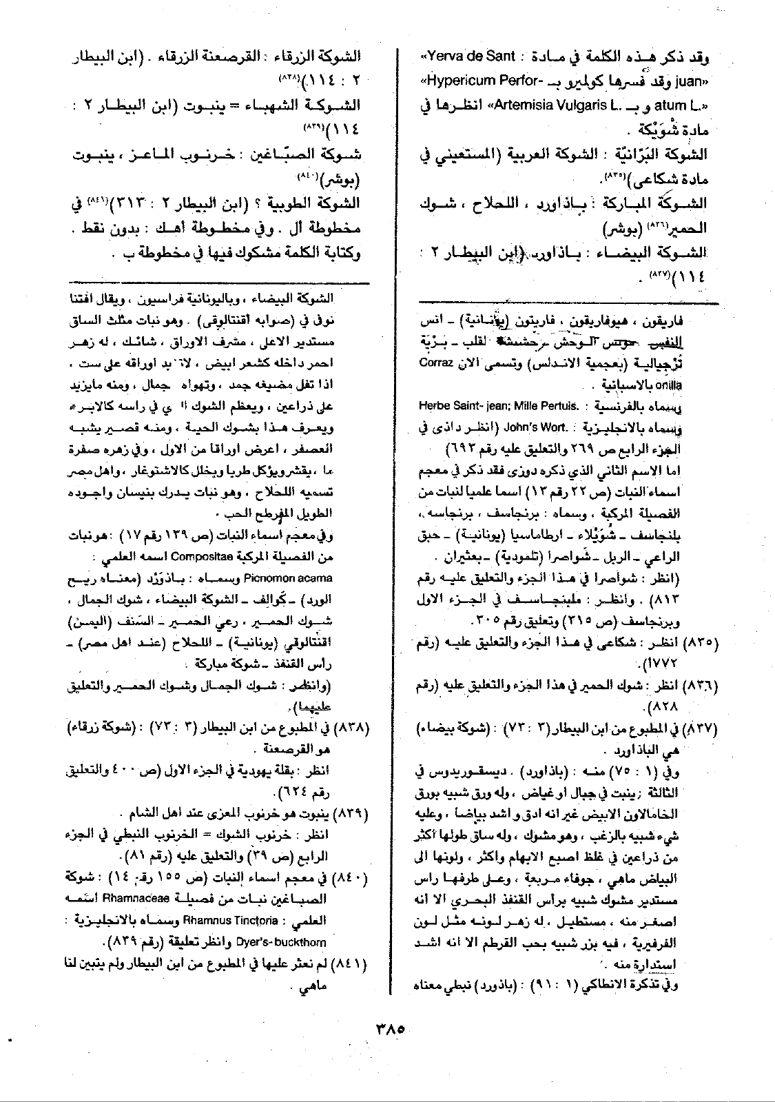 وقد ذكر هذه الكلمة في مادة: ( Yerva de Sant juan) وقد فسرها كولميرو ب (( Hypericum Perforatum L.)) وب Artemisia Vulgaris L. انظرها في مادة شْوَيْكة.